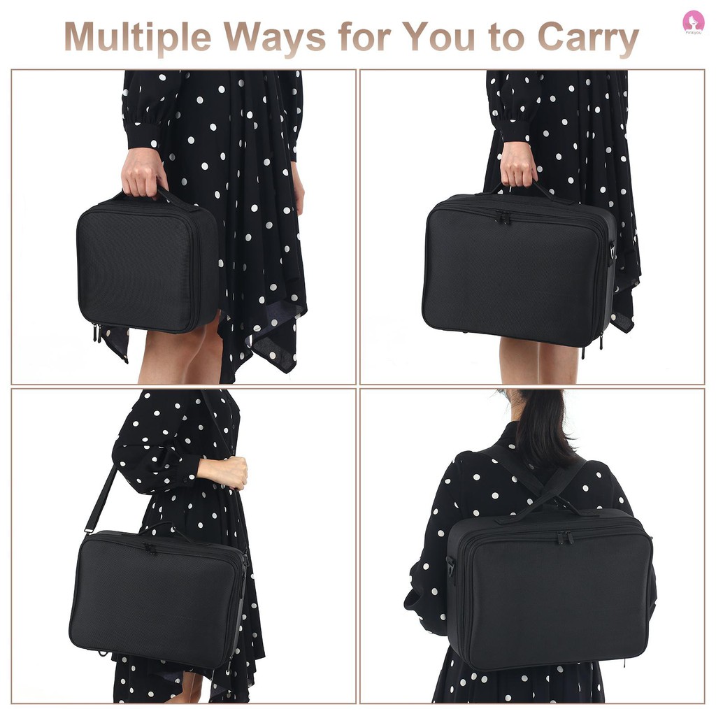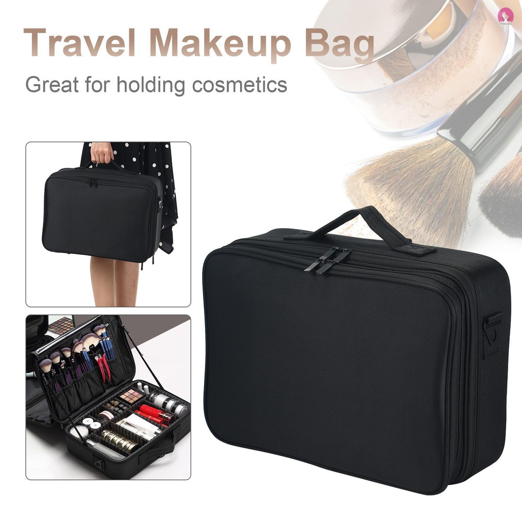 Description: A great storage bag for a basic makeup collection. Come and have a look. Features: Large enough to storage your makeup and cosmetic accessories, like lipstick, lip gloss, makeup brushes, eyeshadow, skin care products, nail polish, nail art tools, shampoo and so on. Adjustable design, it has several compartments and makeup brushes slots, you can adjust it to meet your needs, nice for you to keep tools tidy and organized. A must have for girls and women, leading you to a convenient life, you can use it to hold different tools like cosmetics, shampoo & conditioner, etc. Lightweight and portable, waterproof and shockproof, protects your cosmetics well, great for daily and travel. Made of premium fabric, this bag is durable, solid and sturdy, can be used for a long time. Specifications: Type: Cosmetic Bags Material: Cloth Color: Black Model: S, L (Optional) Item Size: (S): Approx. 26.5 * 23.5 * 9cm / 10.43 * 9.25 * 3.54in (L): Approx. 40.5 * 29 * 13.5cm / 15.94 * 11.42 * 5.31in Package Size: (S): Approx. 27.5 * 25 * 10.5cm / 10.83 * 9.84 * 4.13in (L): Approx. 42 * 30 * 14cm / 16.54 * 11.81 * 5.51in Package Weight: (S): Approx. 739g / 26.07oz (L): Approx. 1728g / 60.95oz Package List: 1 * Makeup Bag
