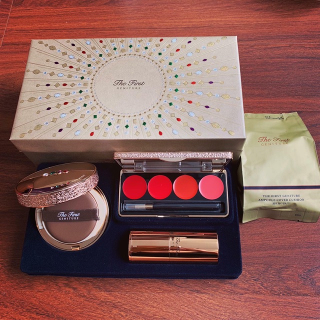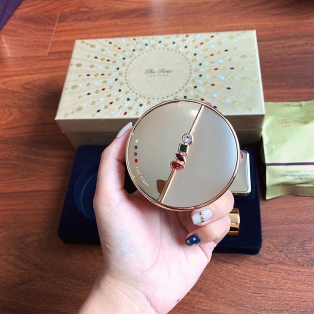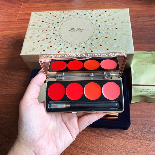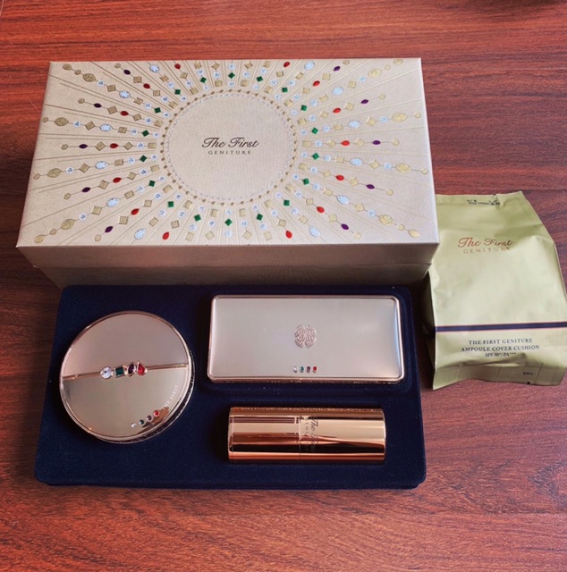 1/ Ohui The First Geniture Ampoule Cover Cushion: chứa đựng đầy đủ tất cả dưỡng chất tương đương với 1 chai tinh chất vàng Ohui The First Geniture Ampoule mang lại cảm giác thoải mái, nhẹ nhàng khi sử dụng. * Thành phần: - Với 3 thành phần chính của tinh chất vàng The First Geniture Ampoule Advance bao gồm: Signature 29cellTM tái sinh da, hoa mẫu đơn và Transkin giúp thẩm thấu nhanh gấp 5 lần. - Công nghệ Dual Fixing System với hạt phấn siêu nhỏ giúp tạo lớp màng che phủ hoàn hảo mà vẫn mỏng nhẹ và thoáng da. - Bông phấn trang điểm cao cấp dầy hơn gấp 5 lần giúp dàn trải và bám dính sản phẩm lên da hơn. * Hiệu Năng: - Có khả năng cải thiện nếp nhăn, làm trắng và chống nắng SPF50+/ PA+++ - Phấn nước chứa vàng nguyên chất 24k với công nghệ tế bào mầm và các thành phần dưỡng chất khác giúp ngăn ngừa lão hóa, mang lại làm da mượt mà đầy sinh khí. - Cân bằng dầu cho da, giúp lấp đầy các nếp nhăn và lỗ chân lông to. - Hoàn thiện lớp trang điểm, duy trì lớp trang điểm cả ngày dài, cho lớp nền thượng đẳng. - Thiết kế vỏ hộp tinh xảo, sang trọng, đính đá cao cấp như một món trang sức quý giá. 2/ Cọ che phủ lông cừu cao cấp: để trang điểm tinh tế hơn, có thể sử dụng củng với cọ che phủ đi kèm. - Đầu cọ tán được làm từ lông cừu mềm mại chuyên dùng để tán phấn, lấp đầy lỗ chân lông giúp lớp cushion dàn trải đều trên da, che phủ sạm nám hoặc mụn nhỏ li ti giúp lớp cushion mỏng mịn mượt trên da một cách hoàn hảo. - Lông cọ cực mềm mịn, giúp tán đều kem ra dễ dàng. 3/ Vỉ son OHUI Rouge Real Lipstick 4 màu trẻ trung, thời trang đẳng cấp: Son Ohui thế hệ mới có độ chống lão hóa cao, bảo vệ và bổ sung độ ẩm cho đôi môi sự bóng mượt tự nhiên, lâu trôi và trong suốt cả ngày. - Với khả năng duy trì màu liên tục đến 12h đồng hồ và có độ chống lão hóa cao với hiệu quả bảo vệ và bổ sung độ ẩm cho đôi môi dễ bị khô trong suốt cả ngày, giúp thể hiện màu sắc đôi môi bóng mượt tự nhiên. Son thiết kế màu sắc tươi mới và cấu trúc dưỡng ẩm cho cảm giác mềm mượt, quyến rũ. - Công thức chứa Ceramide thực vật và thành phần của tinh chất dưỡng da OHUI Cell Power No.1 ngoài chăm sóc trẻ hóa làn môi, còn mang lại hiệu quả bổ sung và duy trì độ ẩm suốt 6h, cho bạn làn môi mịn mượt liên tục, cải thiện nếp nhăn và thâm môi. *OW12 - Orange Crush * RW15 - Redsien * CW10 - Photogenic Orange * OW11 - Buyout Orange