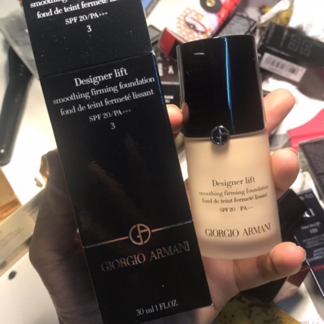 Ngoài 1 số hộp bị lỗi thì nhà em vừa mới về 1 lô nên của giorgio siêu sang chảnh , lên da cực mịn , mướt . Kem nền Giorgio Armani Designer Lift Smoothing Firming Foundation mini mềm mịn và săn chắc da với SPF 20 mang lại lớp nền hoàn hảo, nhẹ như không make up, nó có đặc trưng rất tự nhiên dùng mà như không dùng, cấu trúc kem ẩm nhẹ nhà ng nên có đặc điểm lớn về độ tự nhiên khi blending và layering