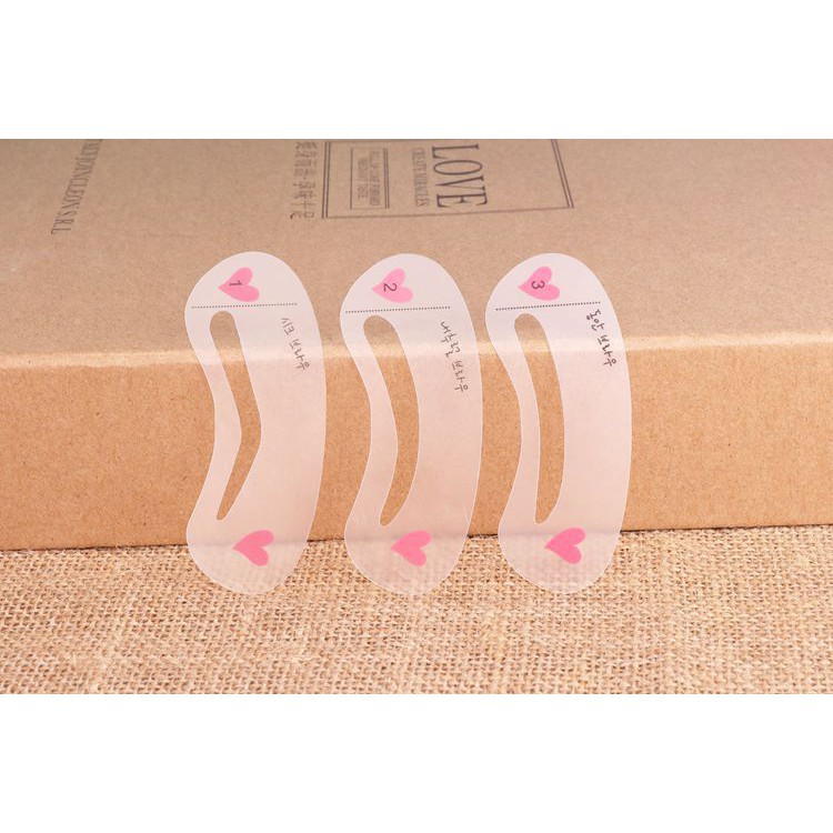 Khuôn kẻ lông mày Mini Brow Class - Xuất xứ: Quảng Châu - Hongkong - Gía lẻ: 10.000đ/bộ Mini Brow Class Drawing Guide là sản phẩm khuôn kẻ lông mày của hãng mỹ phẩm Hàn Quốc, sản phẩm dành cho những người mới tập kẻ lông mày hoặc chưa thành thạo trong việc tạo dáng lông mày. Với Mini Brow Class Drawing Guide bạn sẽ có được một khuôn lông mày đẹp chuẩn Khuôn kẻ lông mày Mini Brow Class Drawing Guide với thiết kế dạng nhựa mềm linh hoạt, đem lại sự tiện lợi và không gây khó chịu khi tiếp xúc với da, không gây lem và cực kì tiết kiệm thời gian nhưng vẫn đảm bảo cho dáng lông mày sau khi kẻ vẫn tự nhiên Khuôn kẻ lông mày Mini Brow Class Drawing Guide được thiết kế với 3 dáng lông mày trong một khuôn giúp bạn chọn lựa được kiểu dáng lông mày phù hợp với khuôn mặt, với kiểu trang điểm khác nhau HDSD: Bước 1. Chải lông mày và chọn kiểu bạn thích. Bước 2. Đặt những đường chấm đen khớp với sống mũi, chỉnh khuôn và cố định bằng ngón tay trỏ và ngón tay giữa. Bước 3. Kẻ mày theo hình dạng đã cố định, từ đầu đến giữa và cuối lông mày. Bước 4. Lặp lại các bước cho phần lông mày bên kia của bạn.