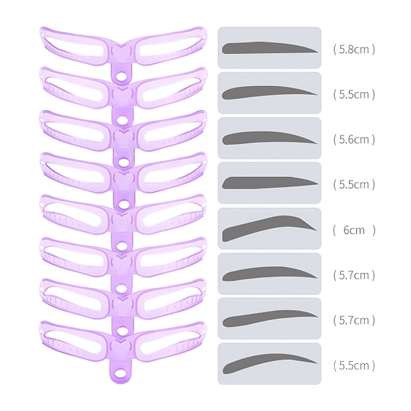 Welcome to my store! Welcome to my store! Description 100% high quality and brand new Material: PP Color: pink, purple Size: as the pictures show Package Include: 8pcs eyebrow template + 1pc handle + 1pc rope