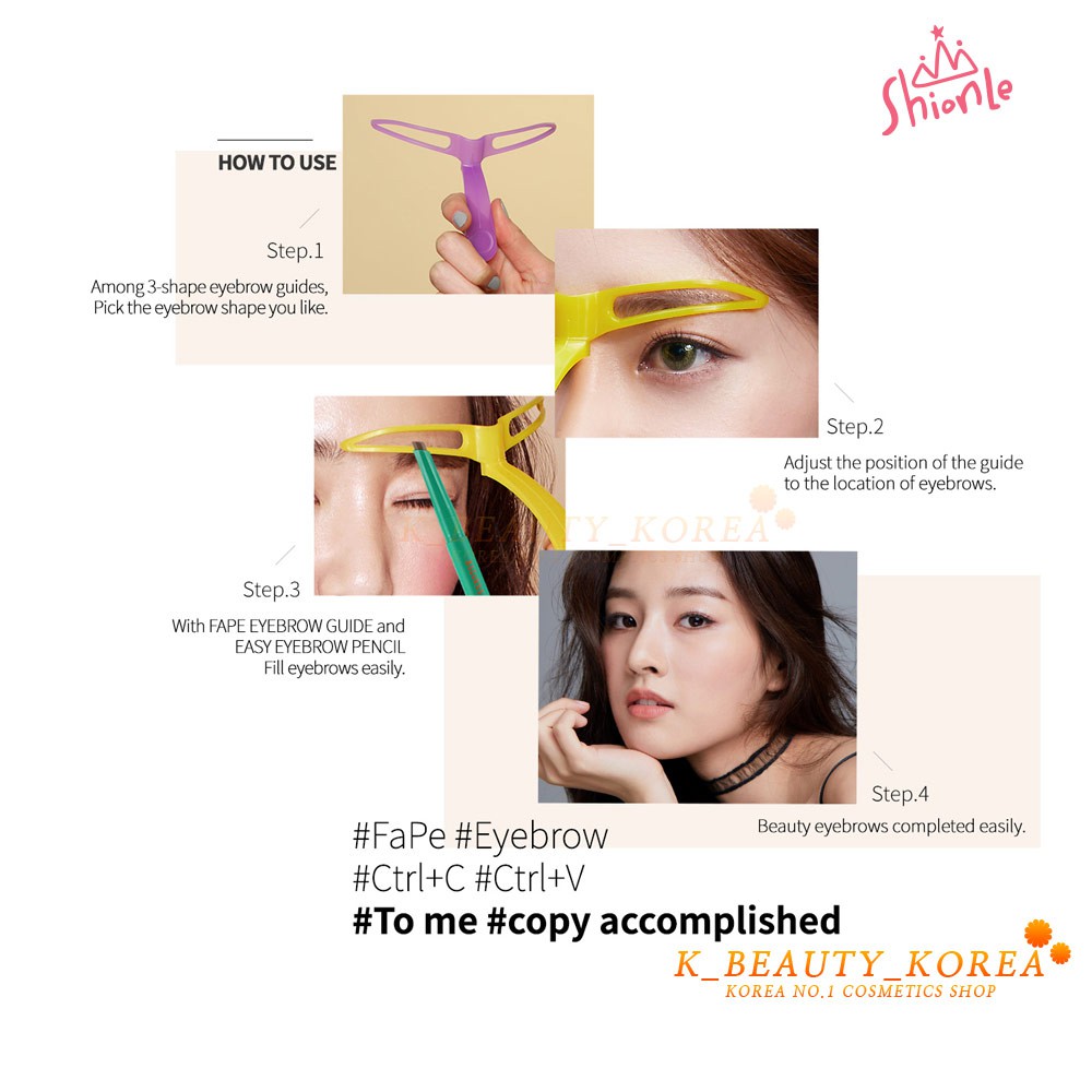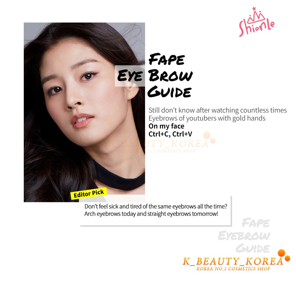 [k_beauty_korea] Shopee seller from Korea !! We are selling only genuine products. [Shionle] Fape EyeBrow Guide 1pcs (3 styles) (* Beauty Eyebrow, Idol Eyebrow, Big Sister Eyebrow **Total 3 types) - Flat straight style - Semi Archi style - Archi seagull style Features Still don't know after watching countless times, eyebrows of youtubers with gold hands On my face **Ctrl+C, Ctrl+V** Following trends, following styles, with eyebrows perfect for me Change ! Fashion people's secret to changing styles, Different eyebrows ! You are so kind to turn everyone into gold hands ~ Just draw easily and completed ! With the EYEBROW GUIDE easy to draw Cut down on the busy morning time ! *Editor Pick: Don't feel sick and tired of the same eyebrows all the time ? Arch eyebrows today and straight eyebrows tomorrow ! Directions 1. Among 3-shape eyebrow guides, pick the eyebrow shape you like 2. Adjust the position of the guide to the location of eyebrows 3. With FAPE EYEBROW GUIDE and EASY EYEBROW PENCIL fill eyebrows easily 4. Beauty eyebrows completed easily #Shionle #Bye on odd eyebrows #now I'm good at hand skill #DAILY MAKE-UP LOOK #Straight eyebrow #Puppy style #So cute #Arch eyebrow #Clean & Refined #So moody #Sharp eyebrow #Girl crush #Like a big sister #Fape #Eyebrow #Ctrl+C #Ctrl+V #To me #copy accomplished