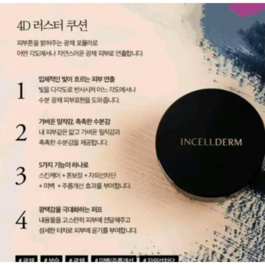 SẢN PHẨM INCELLDERM VỀ ĐỦ BỘ 1/ kem dưỡng da incellderm 2/ sữa rửa mặt incellderm 3/ kem chống nắng incellderm 4/ phấn nước 4d incellderm VÀ CUỐI CÙNG LÀ PHẤN NƯỚC 4 D INCELLDERM MONG MỎI EM NÓ VỀ Xài da đẹp lắm lên tone tự nhiên ạ 🌸 Phấn nước incellderm 4D làm sáng tông màu da giúp cho làn da dạng dỡ tự nhiên từ mọi góc độ. Xuất xứ : hàn quốc