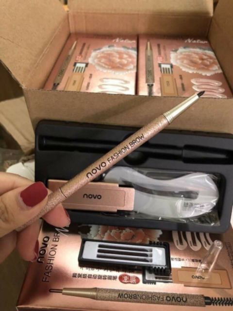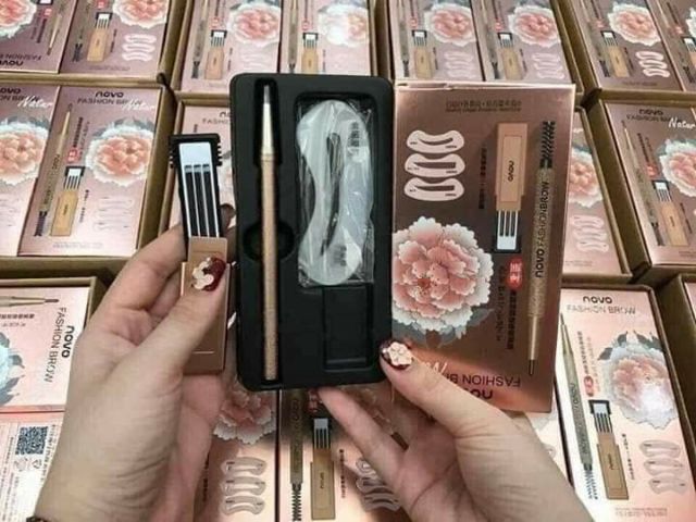 Bộ Khuôn Kẻ Lông Mày Chuẩn NOVO kèm bút chì Kẻ 2 Đầu và 3 Ruột Chì Kẻ Mày Lẻ 45k Tạo điểm nhấn trên khuôn mặt Xu hướng thời trang chân mày ngang hiện nay Khuôn mày định hình sẵn không tốn thời gian kẻ và trang điểm Bộ chì mày định hình 3 kiểu NOVO FASHION BROW phong cách Hàn Quốc, cho bạn 1 bộ mày hoàn hảo trong vài phút voi 1 chì mày 2 đầu, 3 khuôn kẻ mày 3 kiểu, 3 ruột chì mày thay thế Cặp chân mày đẹp sẽ khiến chị em luôn tự tin khi ra đường ..thu hút mọi ánh nhìn tôn lên vẽ đep của khuôn mặt