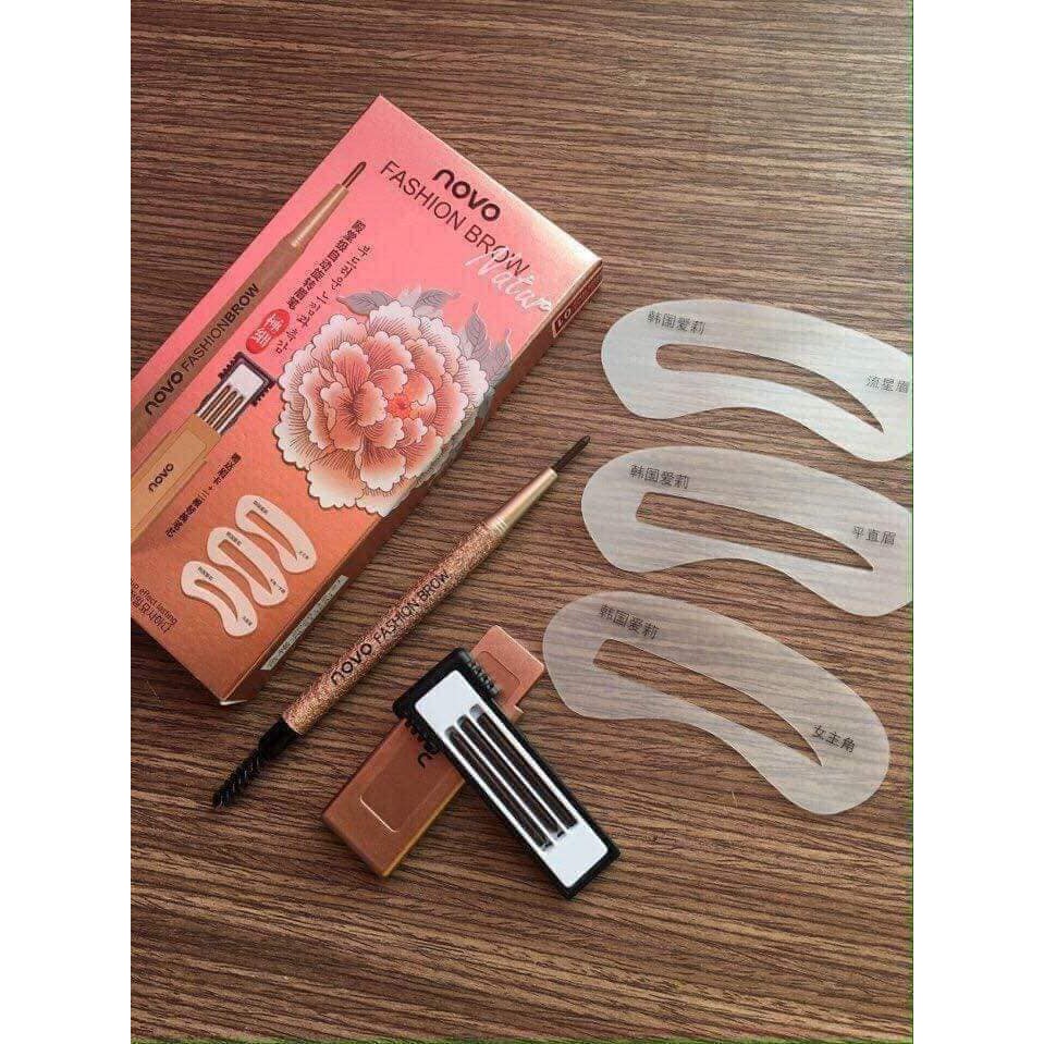 BỘ KHUÔN KẺ LÔNG MÀY HÃNG NOVO ✔ 3 Dáng chân mày. ✔Chì kẻ 2 đầu( chì+ chải) ✔1 hộp ngòi dự phòng( 3ngòi)