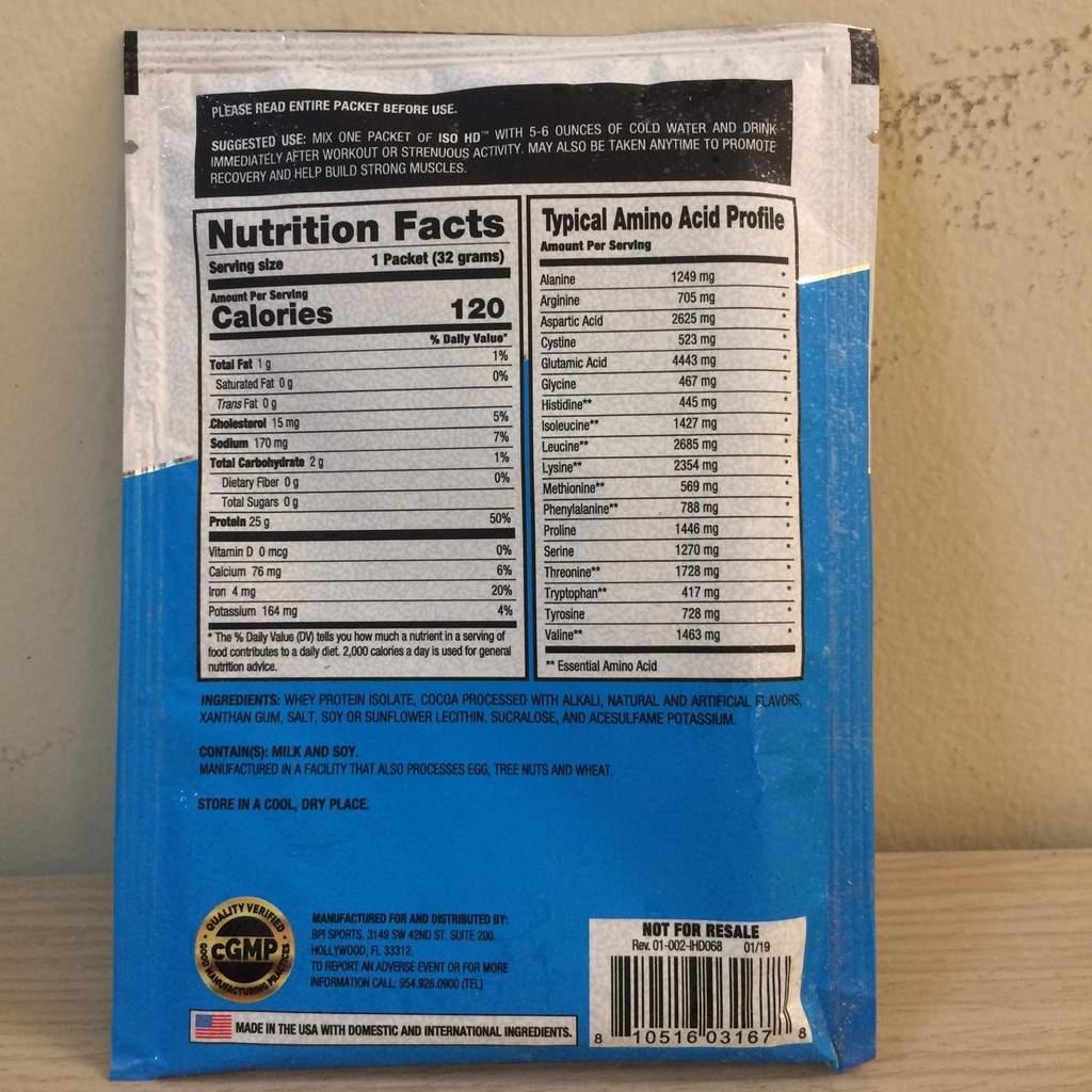Gói thử sample sữa tăng cơ bắp Bpi Bpisports Iso HD 100% whey isolate 1 lần dùng 32gram. cung cấp 25g protein