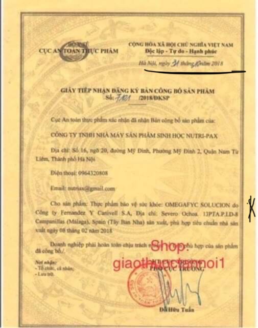 Thông tin sản phẩm Omegafyc Solucion THÀNH PHẦN : mỗi 10ml có Omega: 350 mg Tương đương DHA : 15mg + EPA: 7 mg Potassium di-Hydrogen Phosphate: 450mg Tương đương phospho: 105mg Phụ liệu: Glycerine (E422), sorbate postassium E202, acid carminique E120, sữa ong chúa, các chất điều vị, hương, nước vừa đủ. CÔNG DỤNG: Giúp bổ sung acid béo không no (DHA, EPA) cho cơ thể. Hỗ trợ chức năng hệ tim mạch Hỗ trợ sức khỏe trí não và mắt. Đối tượng sử dụng: Người muốn duy trì sức khỏe tim mạch, trí não và mắt. CÁCH DÙNG: Lắc kĩ trước khi dùng, có thể uống trực tiếp hoặc pha loãng với nước lọc, nước hoa quả. + Mỗi lần uống 10ml/lần, ngày 1-2 lần. + Trẻ em uống theo tư vấn của bác sĩ, dược sĩ hoặc chuyên gia dinh dưỡng. + Sản phẩm có vị tanh đặc trưng của omega, không dùng quá liều khuyến cáo. Cảnh báo về sức khỏe: Không dùng cho người mẫn cảm với bất kỳ thành phần nào của sản phẩm. Thực phẩm này không phải là thuốc, không có tác dụng thay thế thuốc chữa bệnh. BẢO QUẢN: Bảo quản ở nơi khô mát, tránh ánh sáng. Để xa tầm tay trẻ em dưới 3 tuổi. Quy cách đóng gói: Chai 150ml/ hộp. Số đăng kí tại VN: 7101/2018/ĐKSP Sản xuất bởi: FERNANDEZ Y CANIVELL S.A. Tây Ban Nha