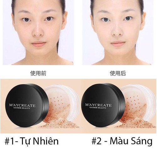 MÔ TẢ SẢN PHẨM Phấn phủ nền Maycreate có thành phần tự nhiên, không hóa chất độc hại - Bột mỏng mịn tạo nên lớp nền hoàn hảo, bền màu - Che phủ khuyết điểm tốt - Kiểm soát dầu hiệu quả - Không thấm nước - Hộp đựng như hình, có cả lớp gương trong nắp hộp - Xuất xứ: Trung Quốc Khối lượng: 15g Có 2 màu sắc: - 1: màu tự nhiên - 2: màu sáng (tông màu sáng hơn màu tự nhiên)