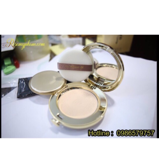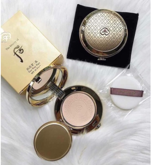 Phấn phủ dạng nén Whoo vàng Hoàng Cung cho làn da mịn màng. Giá công ty :1.400.000₫ Công dụng: - Phấn phủ đông y dạng nén Whoo Two Way Pact che phủ hoàn hảo các nếp nhăn hiệu chỉnh sắc da cho lớp nền sáng trong và đầy sinh khí. - Độ dàn trải nhẹ nhàng, che phủ các nếp nhăn và lỗ chân lông to cho lớp trang điểm mỏng mịn, không bị vón cục - Có thế dùng phấn phủ dạng nén Whoo Two Way Pact để hiệu chỉnh lớp trang điểm - Khả năng che phủ của Two way cake + cảm giác mềm mượt, trong suốt của Pact. Thành phần chủ yếu: - Thành phần Đông Y cô đặc cao cống thần đơn, hồng ngọc bạch tán, sinh khí ngũ hoa đơn. - Bảo vật Hoàng Cung: Vàng, hổ phách, trân châu, san hô.