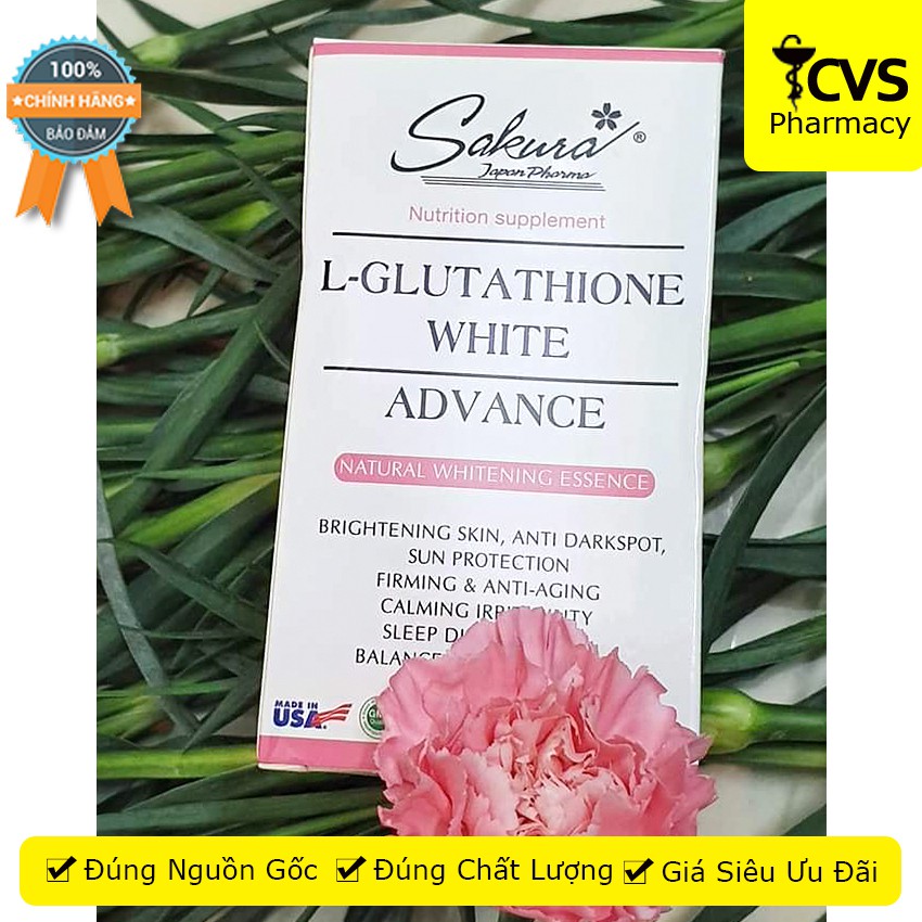 Sản phẩm Viên Dưỡng Da Sakura L Glutathione White Advance - Giúp Sáng Da, Mờ Nám - Cvspharmacy hiện tại đang được bán online với giá tốt nhất trên thị trường là 620.000đ