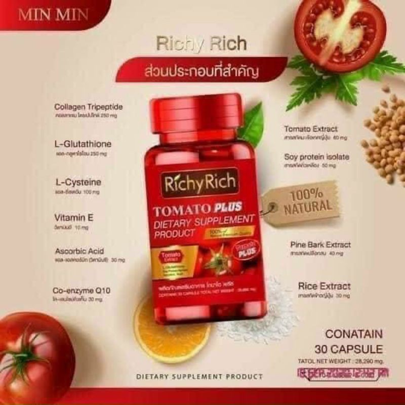 Lợi ích từ thành phần chính trong ′′ cà chua gluta ′′ 🍅 Đồ ăn ngon ❗️ Da trắng hồng ❗️ 💊 1 viên = 100 quả cà chua Uống 1-2 viên mỗi ngày trước khi đi ngủ. 🍅 Giảm thiểu tình trạng sạm da. Tối, nắng hay tối, di truyền đều có thể trắng. An toàn 100 % Hiệu quả ngay từ hũ đầu tiên Cứ làm liên tục cho đến khi bạn hài lòng.