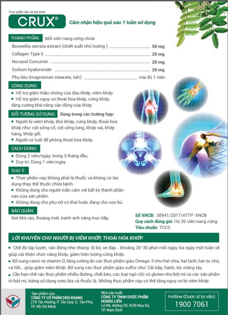 Sản phẩm Viên Uống Hỗ Trợ Xương Khớp Crux - 20 Viên hiện tại đang được bán online với giá tốt nhất trên thị trường là 180.000đ
