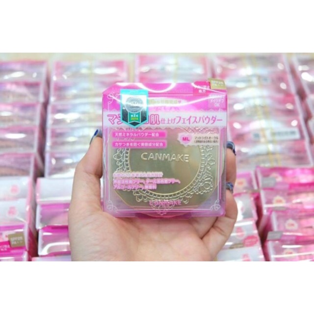 PHẤN PHỦ CANMAKE MARSHMALLOW FINISH POWDER Xuất xứ: Nhật Mỹ phẩm CANMAKE Tokyo được thành lập 1985 và là nhãn hàng sản xuất 100% tại Nhật Bản, dẫn đầu về mỹ phẩm chiết xuất hoàn toàn từ thiên nhiên. CANMAKE Tokyo là dòng sản phẩm dành riêng cho làn da Châu Á, đa dạng với các sản phẩm từ dưỡng da đến trang điểm. CANMAKE Tokyo không ngừng cải tiến và liên tục cho ra mắt các sản phẩm mới nhằm đáp ứng đầy đủ tất cả các nhu cầu của khách hàng quan tâm đến việc chăm sóc làm đẹp. CANMAKE Tokyo cũng đã có mặt ở một số nước trên thế giới … Và Nay đã có mặt tại Việt Nam .Điều đặc biệt ở đây, tất cả các dòng sản phẩm từ CANMAKE Tokyo đều do MC Nguyễn Cao Kỳ Duyên và chuyên gia trang điểm Nhật Bình trực tiếp chọn lọc kỹ lưỡng từ màu sắc đến chất lượng sao cho phù hợp với thị hiếu của những phụ nữ Việt Nam. CANMAKE MARSHMALLOW FINISH POWDER chứa hạt phấn siêu mịn phủ lên da 1 lớp mỏng nhẹ tự nhiên nhưng vẫn giữ độ che phủ cao mang lại nét thanh tú cho gương mặt kết hợp từ tính chất mượt mà của lụa vẻ đẹp ngọt mềm như viên kẹo dẻo Marshmallow. – Tốt cho làn da bạn với 72% thành phần là khoáng chất. – Chỉ Cần Tẩy trang theo cách rửa mặt bình thường. – Không chứa hoạt chất bề mặt, không chất nhuộm màu ,không cồn, không chất tạo hương liệu. – Với công thức phấn hấp thụ bã nhờn , ngăn ngừa tình trạng bóng nhờn, xỉn màu dính nhớp . Thành phần dưỡng ẩm: ●Chiết xuất từ lá lô hội, hương thảo, cúc Chamomile, nước chanh. Thành phần dưỡng da. ●Chiết xuất từ hạt dẻ ngựa, lá tía tô. Thành phần làm mềm da. ●Dẫn xuất Squalance, dầu Ô liu, dầu Jojoba, dầu hạt nho.