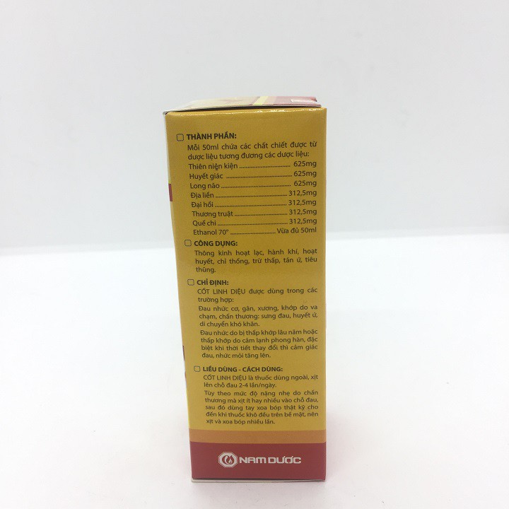 Chỉ định: Cốt linh diệu được dùng trong các trường hợp: - Đau nhứ.c cơ, gân, xuong, khop do va chạm, chấn thuong, sưng đau, huyêt ứ, di chuyển khó khăn - Đau nhức do bị thâp khớp lâu năm hoặc thấp khop do cảm lanh, phong hàn, đặc biệt là khi thời tiết thay đổi thì cảm giác đau, nhức mỏi tăng lên Liều dùng: Xịt lên chỗ đau 2-4 lần/ngày Quy cách: Hộp 1 chai 50ml Hsd; 3 năm kể từ ngày sản xuất