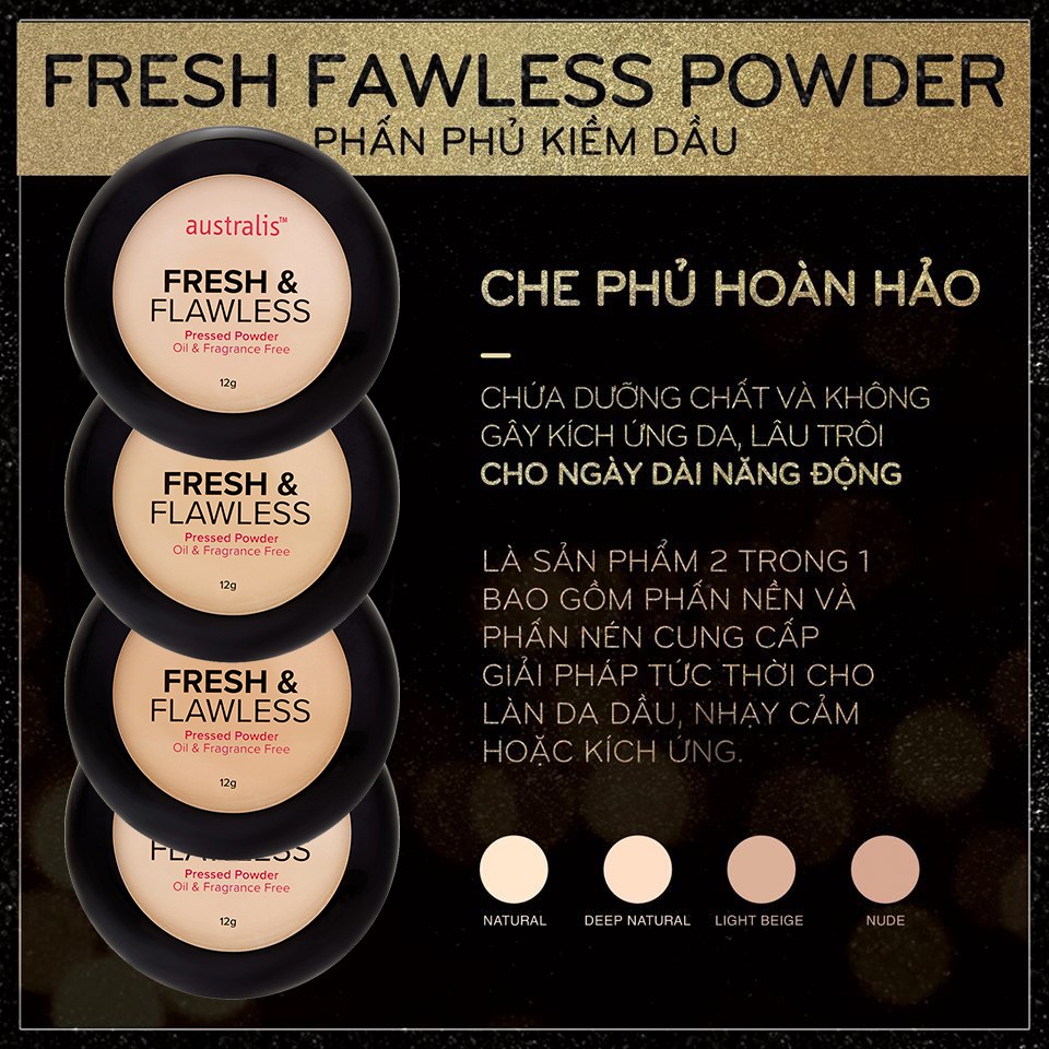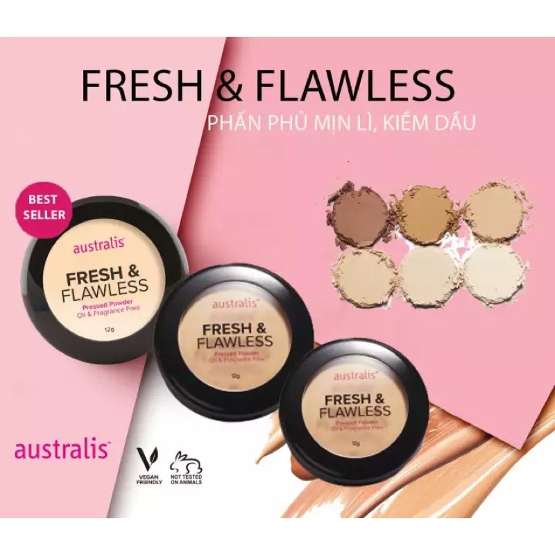 Sản phẩm Phấn Phủ 🌸Freeship🌸 Chức Năng Kiềm Dầu Che Khuyết Điểm Australis Fresh & Flawless Pressed Powder hiện đang được bán tại Shopee.