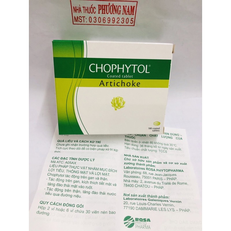 CHOPHYTOL-Thông mật lợi mật(Hộp 180viên).Xem hướng dẫn sử dụng trên hình ảnh sản phẩm shop Phương Nam thiên nhiên việt chụp.Hạn sử dụng : 3 năm kể từ ngày sản xuất in trên bao bì(date luôn mới).Xuất xứ : Pháp