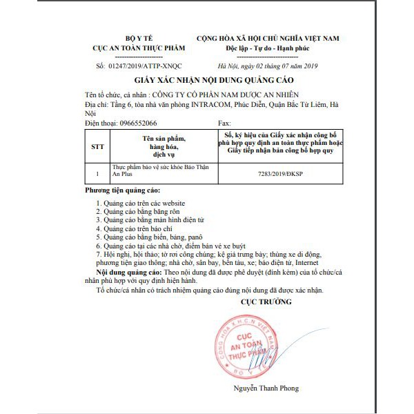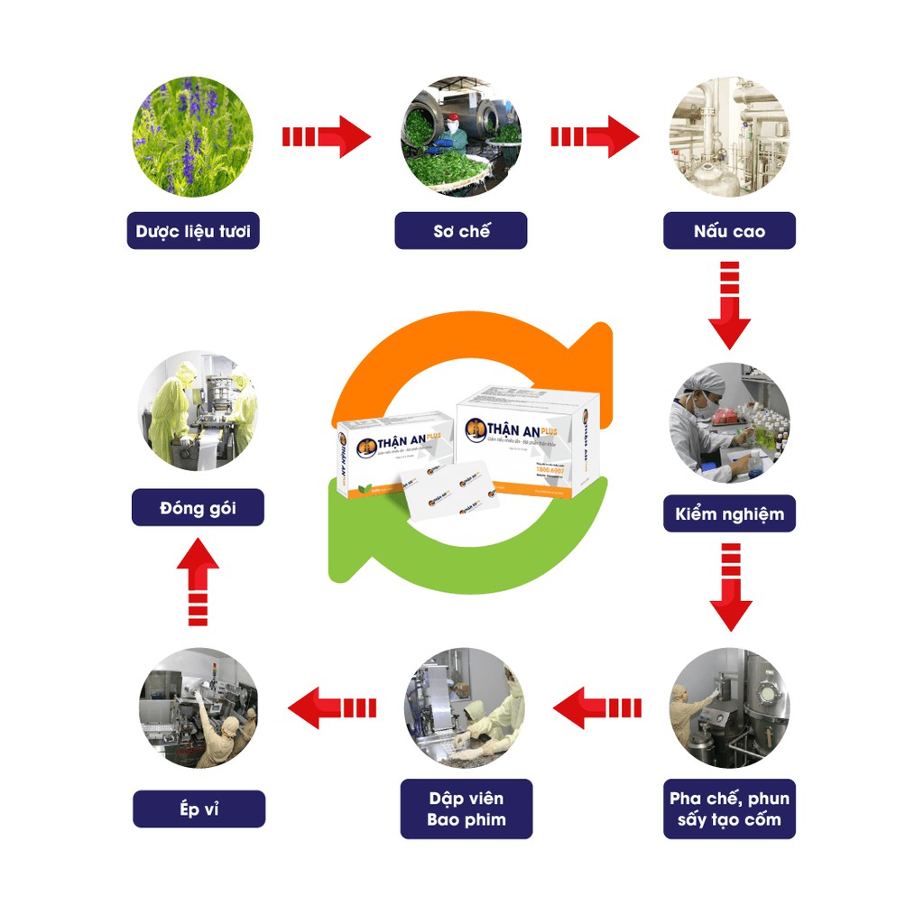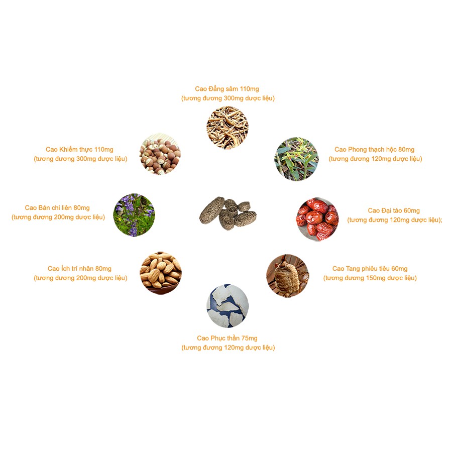 1. Công dụng Thận An Plus: Giúp bổ thận, mạnh gân cốt, giảm đau mỏi ngang thắt lưng Giúp giảm rõ rệt triệu chứng tiểu ngày, tiểu đêm do thận yếu 2. Thành Phần Thận An Plus: Tang phiêu tiêu:..................................150mg Đằng sâm:..........................................300mg Khiếm thực:........................................300mg Ích chí nhân:.......................................200mg Bán chi liên:........................................200mg Phong thạch hộc:...............................120mg Phục thần:..........................................120mg Đại táo:...............................................120mg Phụ liệu: tinh bột, Lactose, Magnesium stearate, PEG, màu thực phẩm vừa đủ 1 viên 3. Cách dùng Thận An Plus: Trẻ em từ 6 - 15 tuổi: Ngày uống 2 viên Người từ 15 tuổi trở lên: Ngày uống 4 viên, mỗi lần 2 viên Uống sau ăn khoảng 30 phút hoặc trước khi đi ngủ Tốt nhất nên dùng liệu trình tối thiểu 1 - 2 tháng *Lưu ý: - Sản phẩm không phải là thuốc và không có chức năng thay thế thuốc chữa bệnh. - Tác dụng của sản phẩm tùy thuộc vào cơ địa của từng người.