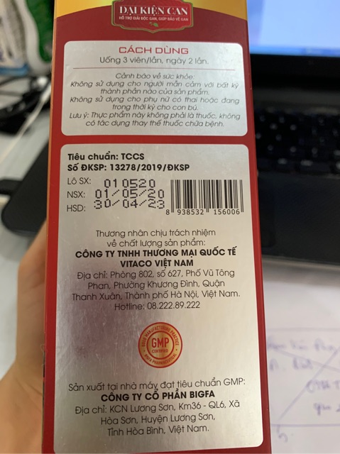 Hướng dẫn sử dụng viên uống Đại Kiện Can - Uống 3 viên/lần, ngày 2 lần sau ăn - Nên sử dụng ít nhất 1 tháng để đạt hiệu quả tối đa