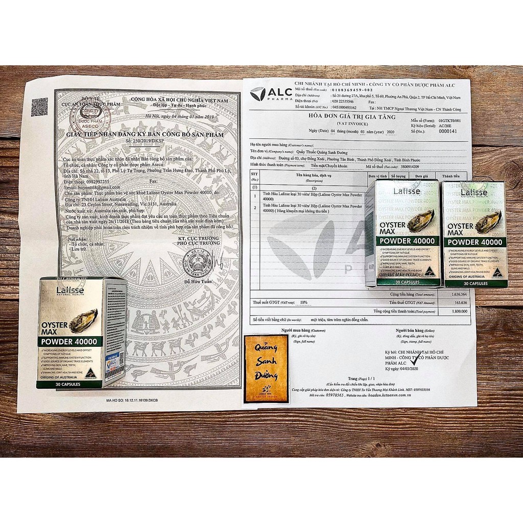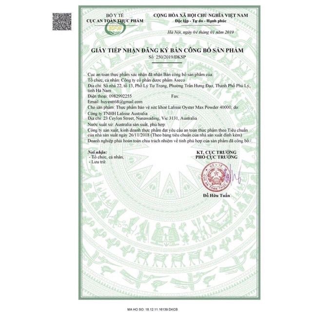 1. Công Dụng Tinh Hàu Lalisse Oyster Max Powder 40000: Gỗ trợ tăng cường chức năng sinh lý, tăng ham muốn Giúp cải thiện số lượng & chất lượng tinh trùng Hỗ trợ cải thiện tình trạng rối loạn cương dương, xuất tinh sớm Hỗ trợ tăng cường sinh lực cơ thể, cải thiện hệ miễn dịch & tăng cường sức đề kháng Giúp tăng cường chức năng sụn, khớp Cho làn da khỏe mạnh, tóc và móng chắc khỏe 2. Quy Cách Tinh Hàu Lalisse Oyster Max Powder 40000: Hộp 1 lọ 30 viên: 360.000 Hộp 1 lọ 100 viên: 850.000 3. Thành Phần Tinh Hàu Lalisse Oyster Max Powder 40000: Tinh chất hàu biển:...................................................160 mg Nhân sâm Hàn Quốc:.................................................80 mg Maltodextrin:...............................................................54 mg Calcium lactate:............................................................3 mg Kẽm Citrate:..................................................................3 mg 4. Ai Nên Dùng Tinh Hàu Lalisse Oyster Max Powder 40000: Nam giới, nữ giới Các trường hợp vô sinh, hiếm muộn Nam giới bị rối loạn cương dương, xuất tinh sớm 5. Liều & Cách Dùng Tinh Hàu Lalisse Oyster Max Powder 40000: Uống 2 viên/ngày trước ăn hoặc theo hướng dẫn của nhân viên y tế Nên dùng thường xuyên để đạt hiệu quả tốt nhất *Lưu ý: - Sản phẩm không phải là thuốc và không có chức năng thay thế thuốc chữa bệnh - Tác dụng của sản phẩm tùy thuộc vào sự hấp thu của từng người