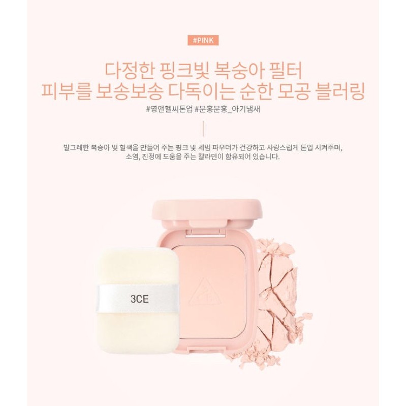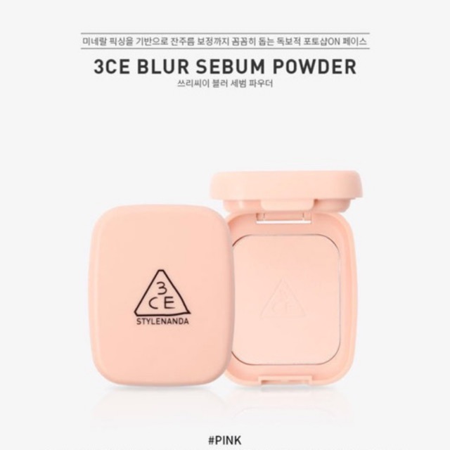 🌸🌸🌸PHẤN PHỦ 3CE BLUR SEBUM POWDER Thiệt nhìn hộp phấn thôi là thấy đáng yêu cute lạc lối rồi, nghiện mỹ phẩm như e kiểu gì e cũng gom về bằng hết. 🤩🤩🤩 ✨✨Phấn Phủ 3CE Blur Sebum Powder có tác dụng hút dầu thừa hiệu quả, cho bạn một làn da mịn màng như em bé. Lớp bột siêu mịn của sản phẩm có tác dụng điều chỉnh lỗ chân lông và nếp nhăn. Tạo hiệu ứng căng mọng nhưng hoàn toàn matte như đã qua chỉnh sửa ảnh chuyên nghiệp vậy đó. 🌸Pink: Sản phẩm có màu hồng đào cho bạn làn da trắng hồng tươi trẻ, đầy khỏe mạnh – Sau khi đã hoàn thành bước trang điểm, Phấn Phủ 3CE Blur Sebum Powder ở bước cuối cùng sẽ tạo hiệu ứng matte hoàn hảo. Chưa hết đâu nha, em ấy còn giúp cố định lớp trang điểm và tăng khả năng lâu trôi. Giữ cho gương mặt của bạn được rạng rỡ suốt cả ngày dài. – Khả năng hút dầu thừa của sản phẩm cực kì hiệu quả luôn đó. Bên cạnh đó, chiết xuất nho trắng cũng được bổ sung vào thành phần có tác dụng chống oxy hóa hiệu quả. Mùi hương thoang thoảng nhẹ nhàng của nho trắng còn giúp bạn cảm thấy thư giãn nữa đó. – Đặc biệt hơn là phấn thấm rất nhanh. Chỉ cần bạn touch-up nhẹ nhàng là lớp dầu thừa sẽ bị hút sạch, cho bạn một làn da mịn màng như em bé vậy đó. Nhưng hiệu ứng mà sản phẩm mang lại rất tự nhiên nha, hoàn toàn không để lại vệt trắng đâu.