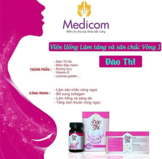 THÀNH PHẦN ĐÀO THIThành phần tạo nên sản phẩm đều được phát triển theo hướng y học cổ truyền, đó là sự kết hợp của nhiều thảo dược thiên nhiên theo một định lượng nhất định: Thành phần Hàm lượng Sâm tố nữ 250mg Mầm đậu nành 200mg Lô hội 30mg Collagen 25mg Vitamin E 5UI Phụ liệu khác: vỏ nang Gelatin, Lactose, talc, Piperine cách dùng Viên uống: mỗi ngày uống 2 viên, chia ra làm 2 lần và uống vào trước khi ăn khoảng 30 phút. CHỐNG CHỈ ĐỊNH Không dùng cho trẻ em dưới 16 tuổi. Không dùng cho phụ nữ đang mang thai, đang cho con bú. Không dùng cho những người mẫn cảm với thành phần có trong sản phẩm. #kem_no_nguc #kem_nở_ngực #mầm_đậu_nành_tăng_vòng_1 #nở_ngực #sâm_tố_nữ #sản_phẩm_tăng_vòng_1 #tăng_kích_thước_vòng_1 #thuoc_no_nguc #thuốc_nở_ngực #thuoc_tang_vong_1 #thuốc_tăng_vòng_1 #thuốc_uống_tăng_vòng_1 #vien_uong_no_nguc #viên_uống_nở_ngực #viên_uống_tăng_vòng_1 sam_to_nu sâm_tố_nữ_collagen sâm_tố_nữ_pure_collagen Sản phẩm không phải là thuốc và không có tác dụng chưa bệnh