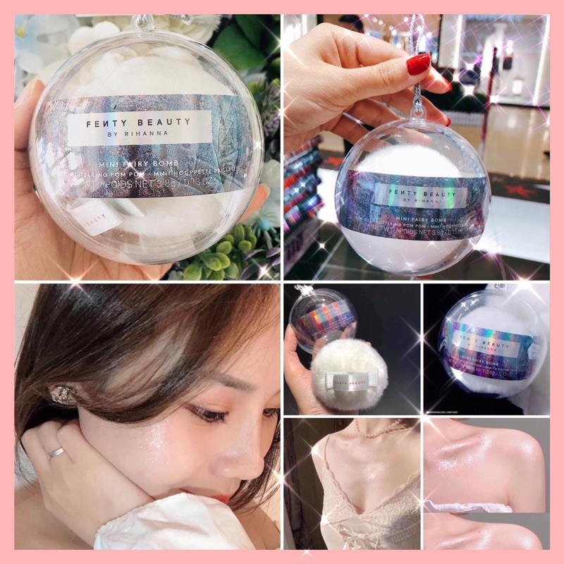 🍑 𝗣𝗛𝗔̂́𝗡 𝗛𝗜𝗚𝗛𝗟𝗜𝗚𝗛𝗧 𝗕𝗔̆́𝗧 𝗦𝗔́𝗡𝗚 𝗙𝗘𝗡𝗧𝗬 𝗕𝗘𝗔𝗨𝗧𝗬 𝗕𝗬 𝗥𝗜𝗛𝗔𝗡𝗔 𝗠𝗜𝗡𝗜 𝗙𝗔𝗜𝗥𝗬 𝗕𝗢𝗠𝗕 💸Giá sale #169k / cục , bth chưa sale 600k hơn 🌸 Bông nhũ Fairy Bomb - Túi bông mềm mại đã có sẵn phấn highlight bên trong. Khi dùng bạn chỉ cần vỗ nhẹ bông vào vùng da cần bắt sáng 🌸 Ngoài ra bông phấn còn được sử dụng thêm tinh dầu Lava Oil giúp phấn bám vào da nhanh hơn, để lại bề mặt mềm mịn, bóng khoẻ 🌸 Highlight Fenty nổi tiếng như nào chắc các bạn cũng biết rồi hen , hàng cao cấp xịn xò KHÔNG CỌC - KHÔNG HUỶ ĐƠN Hàng về sau 3-4 tuần