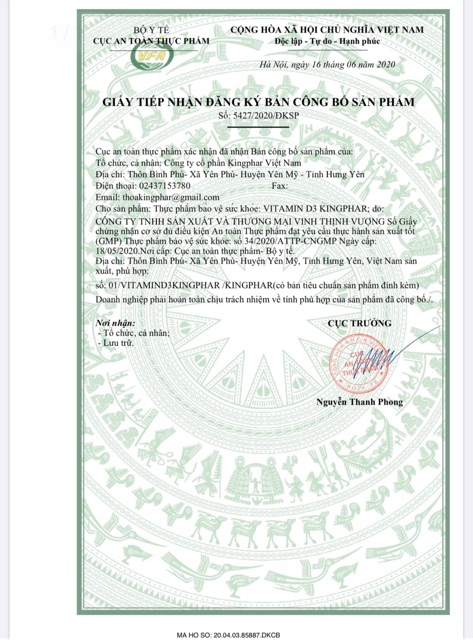 Bổ sung Vitamin D bằng thực phẩm chức năng Vitamin D2 Kingfar mỗi ngày sẽ giúp cơ thể của bạn: Giúp hấp thu calci và duy trì nồng độ phốt pho, calci trong máu Bảo đảm xương và răng phát triển bình thường. Thành phần của Vitamin - D3 Vitamin D3 Kingphar chứa 100% thành phần vitamin D3 Liều dùng của Vitamin - D3 Trẻ em dưới 9 tuổi: Ngày dùng 1 lần, mỗi lần 1 giọt. Nên uống cùng với bữa ăn, pha với sữa, nước hoa quả, hoặc cho vào cháo sau khi nấu chín. Đối tượng sử dụng Vitamin - D3 Trẻ em thiếu vitamin D với các biểu hiện còi xương, đổ mồ hôi trộm, tóc rụng hình vành khăn, chậm mọc răng, chậm biết bò, đi. Tác dụng phụ của Vitamin - D3 Chưa có thông tin về tác dụng phụ của sản phẩm. *** Hiệu quả của sản phẩm có thể thay đổi tùy theo cơ địa của mỗi người. *** Sản phẩm này không phải là thuốc, không có tác dụng thay thế thuốc chữa bệnh. *** ( Thực phẩm chức năng ) Thực phẩm bảo vệ sức khỏe giúp hỗ trợ nâng cao sức đề kháng, giảm nguy cơ mắc bệnh, không có tác dụng điều trị và không thể thay thế thuốc chữa bệnh. Nhà sản xuất : CÔNG TY CỔ PHẦN KINGPHAR VIỆT NAM B58 Nguyễn Thị Định , KĐT Trung Hòa Nhân Chính , Thanh Xuân , Hà Nội ĐT : 024.3715 3780