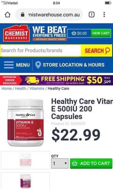 Sản phẩm Vitamin E Healthy Care 500Iu 200 giá rẻ hiện có hơn 4000 lượt xem trong tháng này nhưng chưa có lượt mua, cũng như đánh giá và đánh giá sao trung bình nào. Bạn hãy là người đầu tiên mua và trải nghiệm sản phẩm này nhé!