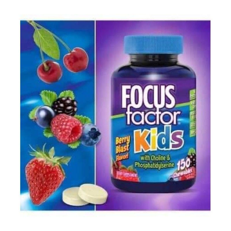 👩🚒Factor Nutrition Labs FOCUS Factor for Kids – Viên uống bổ não cho trẻ từ 4 tuổi trở lên ▪ Xuất xứ: Mỹ ▪ Quy cách: 150 viên ▪ Date 01/2022 🍀Sản phẩm được sản xuất hoàn toàn bằng các nguyên liệu tự nhiên, không chứa chất bảo quản, không sử dụng màu, chất làm ngọt, chất tạo hương nhân tạo và không chứa caffeine. FOCUSfactor for Kids có vị quả mọng ngon tuyệt mà bé yêu thích. 🧠Sản phẩm nhân được đánh giá 4.5/5 sao từ các bậc phụ huynh Hoa Kỳ. FOCUS factor được đánh giá rất cao về hiệu quả giúp trẻ tăng khả năng tập trung, cải thiện trí nhớ, cải thiện kết quả học tập, đặc biệt tốt đối với những trẻ có dấu hiệu hoặc đã bị chuẩn đoán mắc bệnh tự kỷ, tăng động – thiếu chú ý. 🌿Hướng dẫn sử dụng: Trẻ từ 4 tuổi trở lên, dùng 2 viên mỗi ngày.