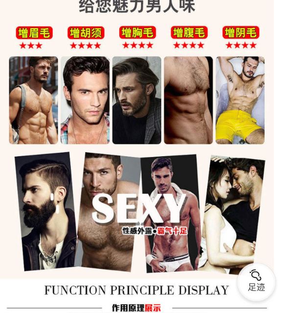 Sản phẩm dành cho tất cả các bạn Nam thích thể hiện sự Nam tính ,sản phẩm này là dung dịch giúp kích thích quá trình mọc râu, mọc lông ngực và tóc ,dung tích 40ml