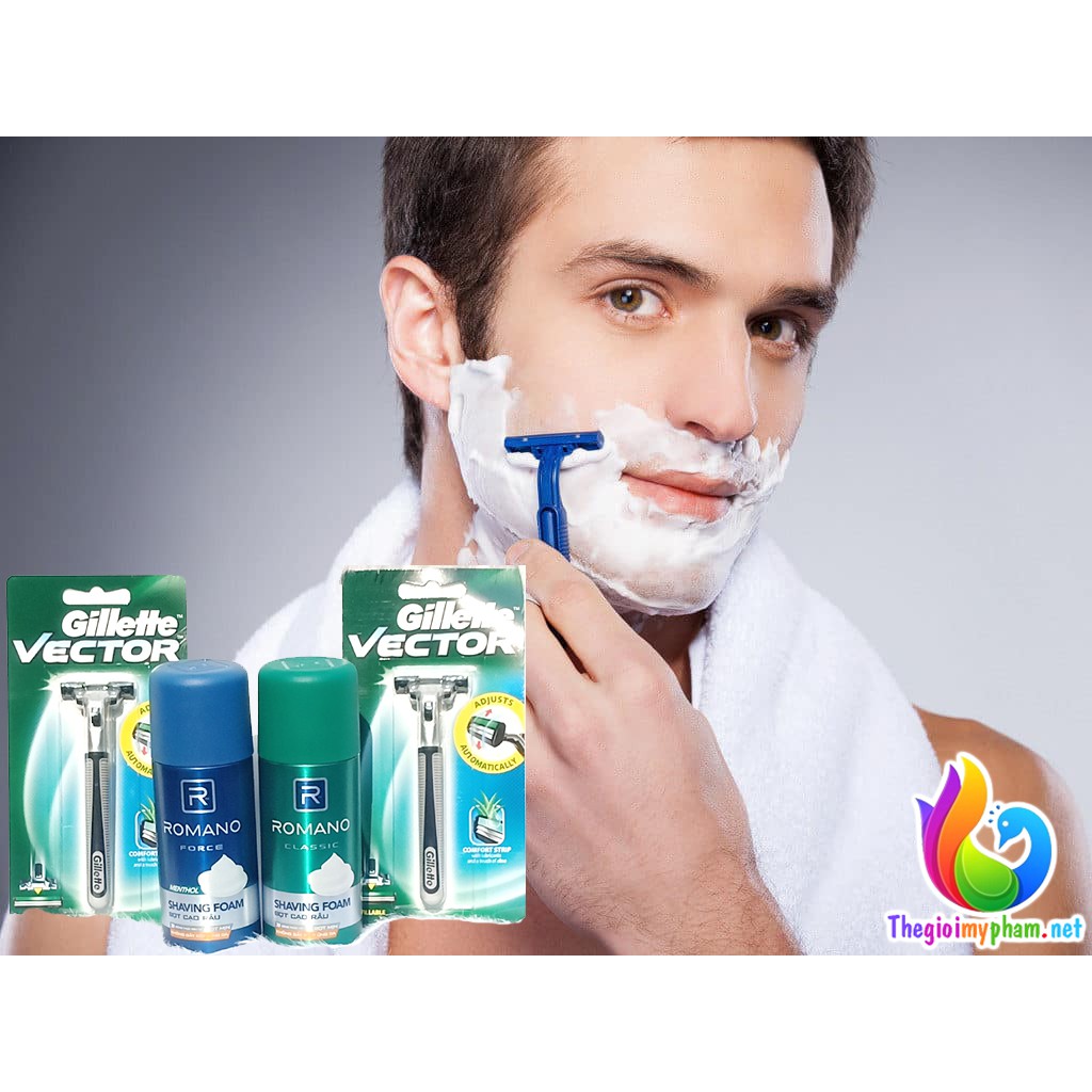 Sản phẩm Bọt Cạo Râu Romano 175Ml - Tặng Dao Cạo Râu Gillette Vector hiện đang được bán tại Shopee.