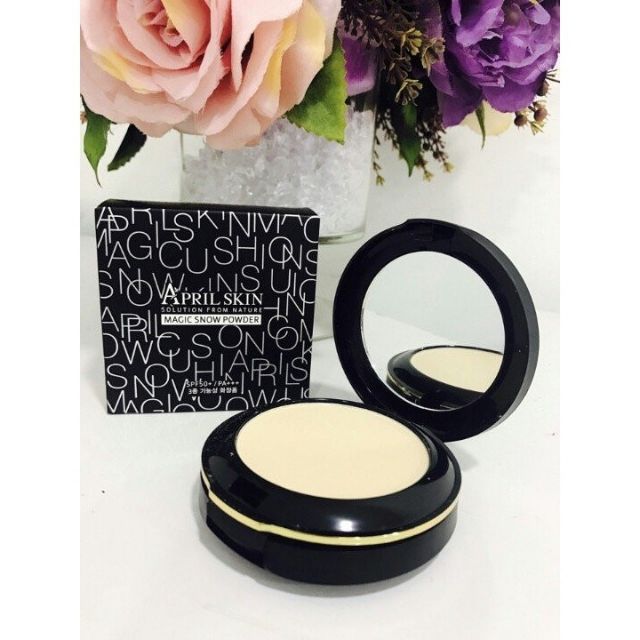 Phấn phủ makeup April Skin 2 tầng April Skin là một thương hiệu mỹ phẩm nổi tiếng hàng đầu tại Hàn Quốc, từng nhận được rất nhiều giải thưởng uy tín cho việc phát triển những dòng sản phẩm từ thiên nhiên thân thiện với sức khỏe và mang đến những công dụng hữu hiệu nhất trong việc làm đẹp đối với phái nữ. Trong các dòng sản phẩm của April Skin, các sản phẩm về Cushion rất được ưa chuộng tại Hàn Quốc và nhiều nước khác vì nhiều công dụng tuyệt vời trong một sản phẩm , tạo nên cơn sốt và lập kỉ lục thần kỳ trong việc tiêu thụ nhanh chóng trên thị trường. Sản phẩm có khả năng che khuyết điểm tốt và đặc biệt phấn nước phiên bản mới này còn có khả năng giữ màu trên da bền hơn, duy trì nét rạng ngời cho bạn suốt cả ngày dài