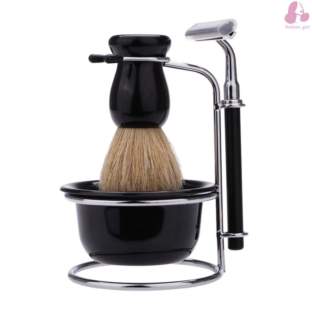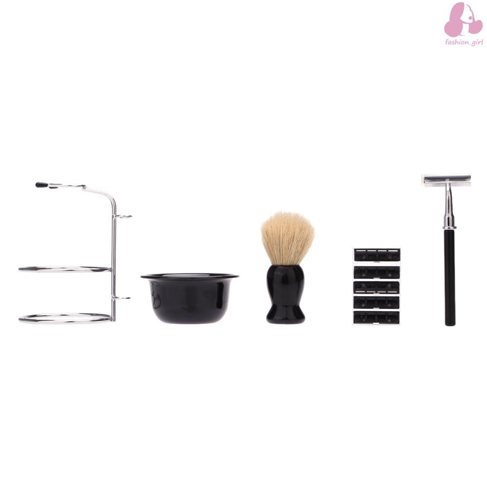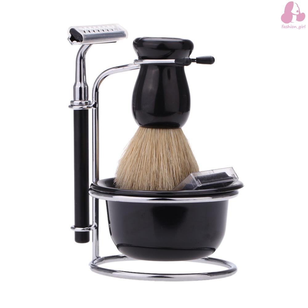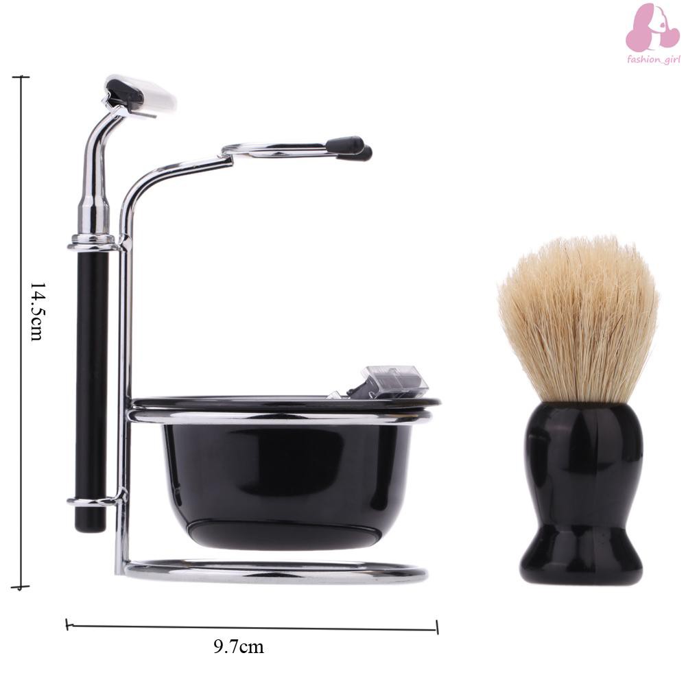 welcome to fashion-girl.4 In 1 Men's Manual Razor Set Beard Razor Male Facial Cleaning Tool Shaving Brush Bowl Stainess Steel Stand Holder 5 Blades Wet Shaving Features: 4 In 1 dish stand bowl shaving razor beard brush kit set. Black finished handle and twin-blade cartridges with thinner and finer edges, enabling the blades to cut effortlessly through beard with less pull. Solid silver plated holder stand provides very good organization for your shaving set. Ideal safety razor set for home, outdoor, travel, personal and professional use. This set gets all you need for your daily saving job and easy for storage. Specifications: Materail: Holder: Stainess Steel Shaving Bowl: Plastic Shaving Brush Handle: Plastic Shaving Brush Head: Badgerhair Razor Handle: Plastic Razor Head: Stainess Steel Item Weight: 178g / 6.3oz Package Size:14.5 * 10 * 10cm / 5.7 * 3.9 * 3.9in (L * W * H) Package Weight: 221g / 7.8oz Package List: 1 * Razor 5 * Replacement Razor Blades 1 * Shaving Brush 1 * Soap Bowl 1 * Razor Stand