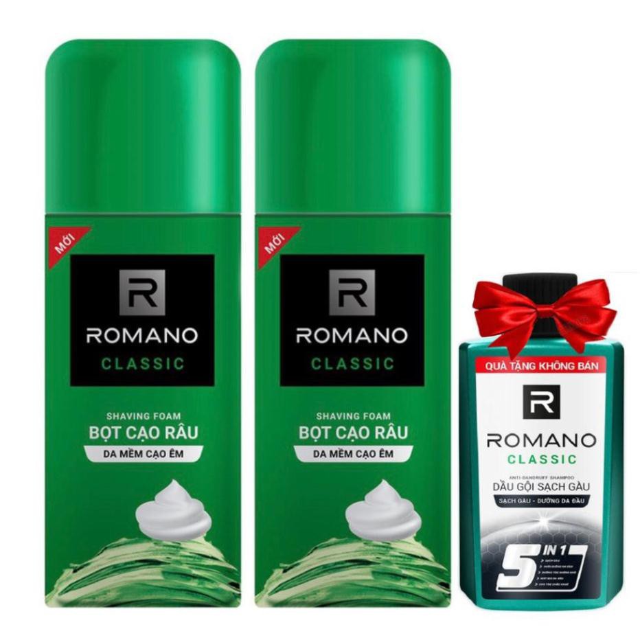 Sản phẩm Combo 2 Chai Bọt Cạo Râu Romano Claasic-Force 175Ml Tặng Kèm Dầu Gội Sạch Gàu 60Gr hiện đang được bán tại Shopee.