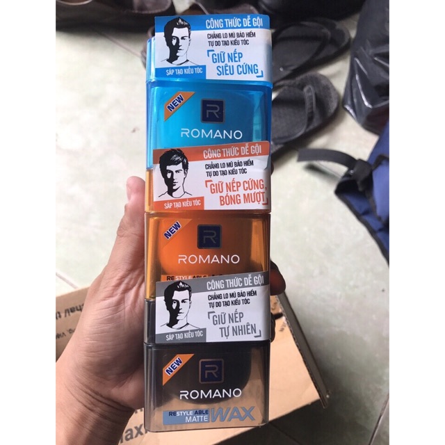 Romano thương hiệu nổi tiếng hàng nhất nhì trong lĩnh vực mỹ phẩm nam giới như dầu gội đầu với hương thơm nam tính mạnh mẽ. Một lần nữa thương hiệu đó lại xuất hiện trên một diện mạo mới đó chính là sáp vuốt tóc Romano với hương thơm đặc trưng riêng của mình, rất quý phái, bản lĩnh đàn ông đích thực. Sáp vuốt tóc Romano chính hãng Wax Romano có 3 cấp bậc cho bạn thoải mái lựa chọn đó là: giữ nếp siêu cứng; giữ nếp tự nhiên; giữ nếp cứng, bóng mượt. Bạn thích mạnh mẽ để kiểu tóc dựng đứng cao thì nên dùng loại siêu cứng. Tự nhiên sẽ dành cho những quý ông lịch sự sang trọng. Thanh niên thích sự hào nhoáng bóng bảy hãy nhanh tay chọn sáp vuốt tóc Romano bóng mượt. Sáp vuốt tóc Romano 3 cấp độ Cách sử dụng sáp Romano gồm 3 bước đơn giản: Bước 1: Cho sáp tạo kiểu tóc Romano, thoa đều. Bước 2: Dùng tay tạo kiểu theo ý muốn. Bước 3: Chỉnh sửa để tóc trông đẹp tự nhiên.