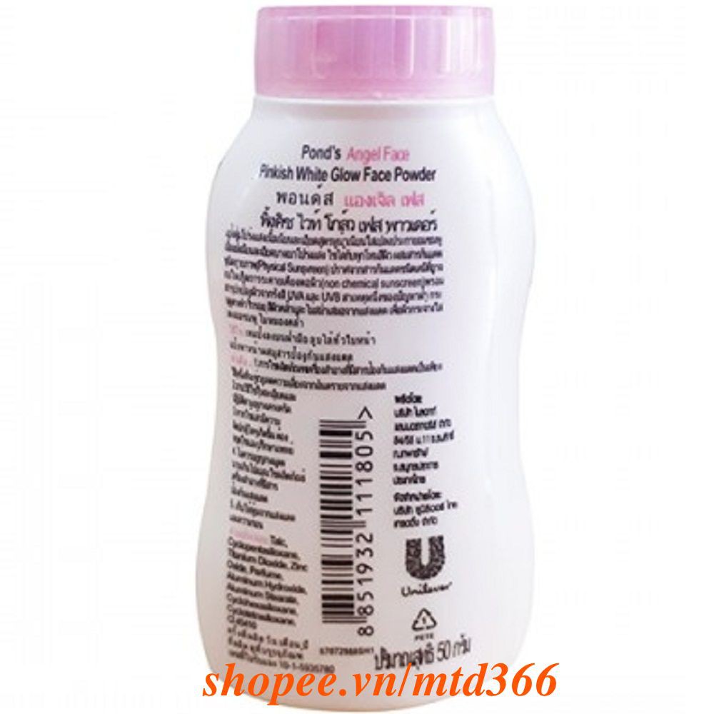 Thông tin sản phẩm: Thương hiệu: Pond's. Sản xuất tại: Thái Lan. Trọng lượng: 50g. SKU (Mã Vạch): 8851932111805 -Công dụng với phấn phủ trang điểm, kiểm soát dầu nhờn và che khuyết điểm Pond’s magic powder giúp cho làn da tươi tắn và khô thoáng suốt cả ngày. - Tông màu trắng hồng rạng rỡ, tự nhiên, hạt phấn cực nhẹ giúp trang điểm trong suốt. - Đặc trị cho làn da nhiều dầu, da hỗn hợp và da mụn. - Bột phấn giúp làm sáng da, che khuyết điểm và chống nắng vượt trội, giúp làn da khô thoáng, tươi tắn trắng hồng như da em bé. - Bột phấn rất mịn, sử dụng được rất lâu. Hương phấn hoa dịu nhẹ. - Thiết kế rất tiện dụng cho việc di chuyển, không phải lo sợ phấn vỡ như phấn nén. - Phấn phủ Pond's màu sắc sáng hồng tự nhiên. - Chính hãng nhập khẩu từ Thái Lan. - HSD : xem bao bì sản phẩm. #phan #phu #nang #tong #50g #ponds #magic #powder