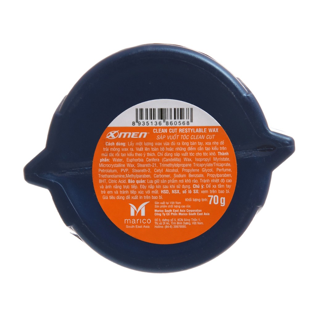 Thương hiệuX-Men Dành cho tóc ngắn và trung bình Giữ tóc có độ cứng vừa phải Tạo độ siêu bóng cho tóc Hương thơm đẳng cấp, lịch lãm Dễ gội, không để lại vảy trắng Mở rộng Thành phần và công dụng Sáp vuốt tóc X-Men Clean Cut không những giúp bạn dễ dàng hơn khi tạo kiểu tóc mà còn giúp giữ cho mái tóc luôn có độ bóng, khỏe suốt ngày dài năng động. Sản phẩm giúp giữ tóc tự nhiên, dễ dàng tạo lại kiểu tóc sau khi đội mũ bảo hiểm, không để lại vảy trắng trên tóc và dễ dàng gội sạch. Hướng dẫn sử dụng Cho một lượng sáp vừa đủ ra lòng bàn tay, Xoa đều lên tóc và tạo kiểu.