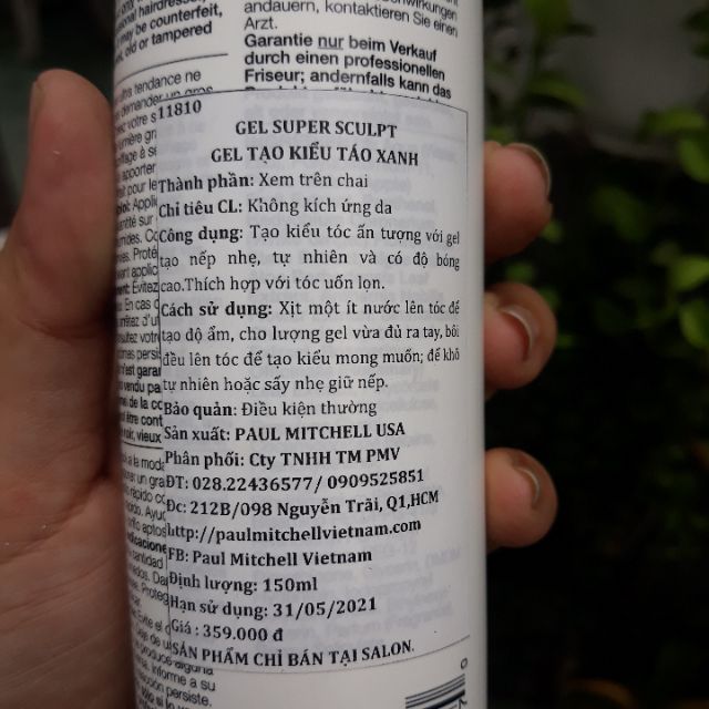 GEL TẠO NẾP TÓC UỐN MÙI TÁO XANH PAUL MITCHELL SUPER SCULPT 250ML Xuất xứ : USA ( MỸ) Công dụng: giữ nếp tóc dạng nhẹ, vừa. tuyệt vời khi định hình tóc, giữ nếp tóc, không làm xẹp tóc, tăng độ bóng và tạo wet look. Thích hợp kiểu tóc uốn lọn. ... Cách Dùng: Xịt 1 ít nước lên tóc để tạo độ ẩm, cho lượng gel vừa đủ ra tay, bôi đều lên tóc để tạo kiểu mong muốn, để khô tự nhiên hoặc sấy.