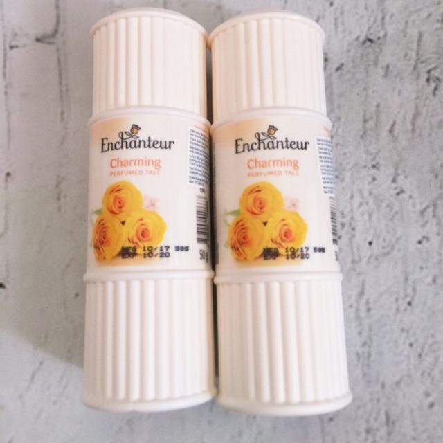 Enchanteur Charming Perfumed Talc. Phấn thơm Enchanteur có chứa các thành phần như Talc powder, Fragrance, Triclosan giúp da khô thoáng và dễ chịu, không gây nhờn dính. Công dụng Dùng làm phấn phủ Phấn rom cho bé Tay ra mồ hôi và vùng nách khi dùng sp ban sẽ cam thấy khỏi ráo thoáng mat mùi hương nước hoa nhẹ nhàng quyến rủ của nước pháp sẽ theo bạn suốt ngày dài Sp được thiết kế nhỏ gọn 5gr thích hợp mang theo đi học và đi làm bỏ trong túi rất tiện Giá thì rất bình dân nhưng chất lượng thì tuyệt vời nhé