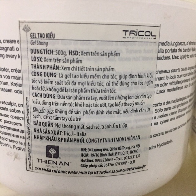 Gel cứng giữ nếp tóc Biosky Tricol 500ml Hũ Gel khổng lồ 500ml giá siêu rẻ Made in Malaysia Nhãn hiệu Biosky CÔNG DỤNG: Gel tạo nếp tóc cứng, giúp tạo kiểu mọi phong cách, phù hợp cho các kiểu tóc ngắn, tóc tỉa, tóc nam. dễ dàng làm sạch sau khi gội đầu không gây bết dính, không bám bụi