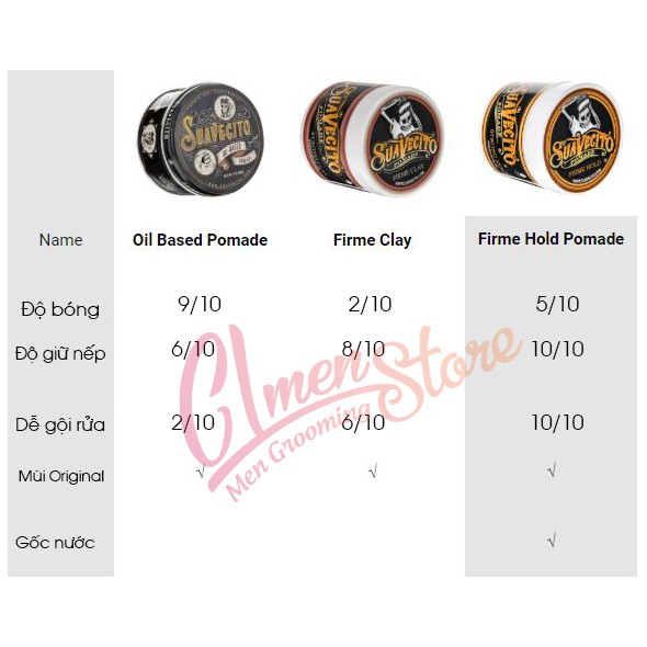Dung tích: 114gram Mùi hương: Original Scent Gốc: Dầu Sản xuất: Mỹ Thương hiệu: Suavecito __________________ Suavecito Oil Based Pomade là một sản phẩm gốc dầu đến từ thương hiệu đình đám của Mỹ. Thương hiệu này cho ra mắt khá nhiều sản phẩm trên thị trường và điều đặc biệt để bạn có thể nhận biết được thương hiệu này ở một chữ ” DỊ “.Các sản phẩm của Suavecito lấy một thứ chết chóc làm chủ đạo, đó là xương, sọ v..v Nhưng đây là cái hay của thương hiệu này, họ không làm bạn nhầm lẫn đi đâu được cả. Ưu diểm và Thông tin của dòng Suavecito Oil Based Pomade: Độ giữ nếp dạt tới Heavy Hold nếu như bạn lên đủ dung tích, hoặc ở Firm Hold nếu bạn muốn. Độ bóng của Suavecito Oil Based Pomade ở mức 9/10, tức là High Shine (bóng cao) Khả năng gội rửa của sản phẩm này sẽ khó. Tất cả Pomade gốc dầu đều vậy, nhưng sẽ dễ hơn nếu bạn có Reuzel Scrub Shampoo ( dầu gội đánh tan Build-up) Suavecito Oil Based Pomade sử dụng như một loại Pomade truyền thống, hãy dùng lược và tạo các kiểu như Classic Pompadour, Slicked Back v.v. Không sử dụng các hoá chất làm hại tóc, đạt tiêu chuẩn kiểm định từ Hoa Kỳ Mùi hương Original nước hoa của Suavecito, tin CL Men’s Store nhé. Mình đã ghiền từ khi ngửi chai Body Wash Dùng được cho mọi loại tóc. Cách sử Suavecito Oil Based Pomade: Cách 1: Apply lên tóc khô , dùng lược răng khít chải đều. Mỗi lần apply là 1 Scoop ( 1 đốt ngón tay ). Nếu lên 2 scoop chưa đạt đủ độ Hold bạn muốn thì lên thêm Scoop thứ 3. Cách 2: Sử dụng The Original Hair Tonic lên tóc ẩm vừa gội xong, Sau đó sử dụng 1-2 scoop pomade để tạo kiểu với lược Thành phần: Petrolatum, Microcrystalline Wax, Fragrance (Parfum)