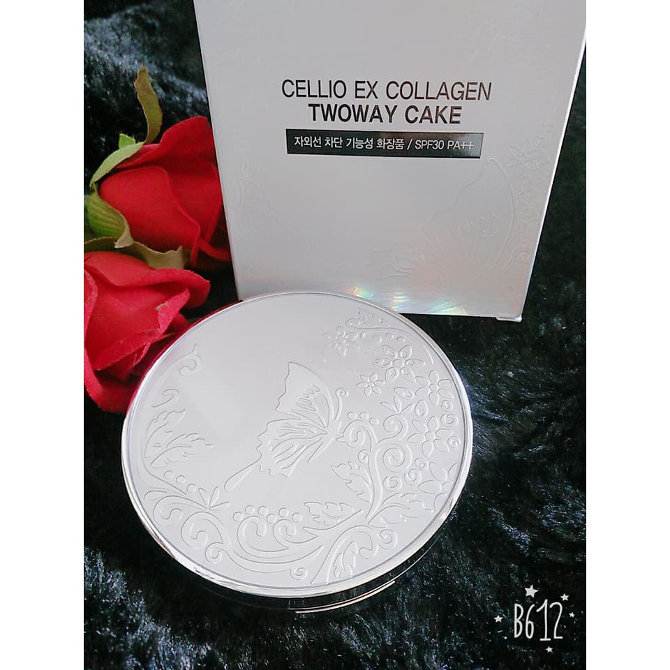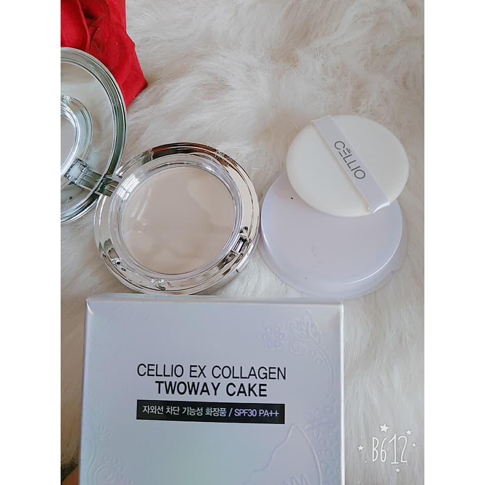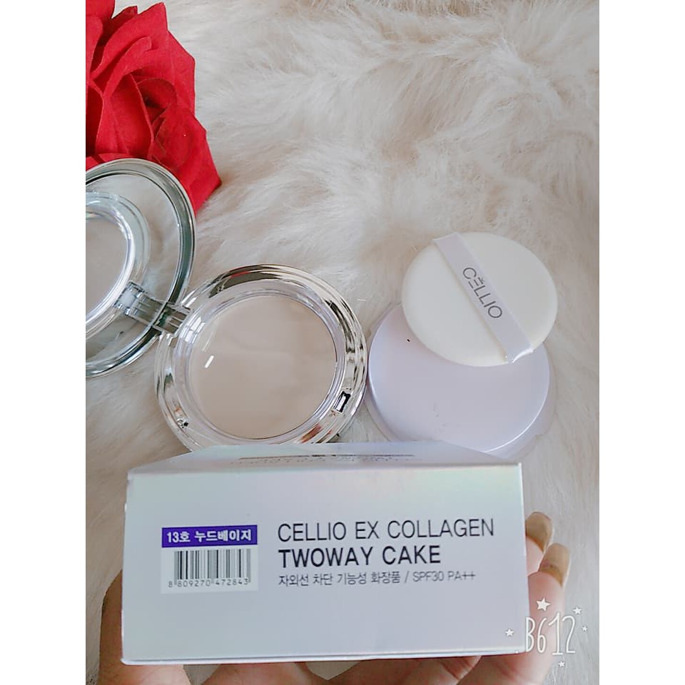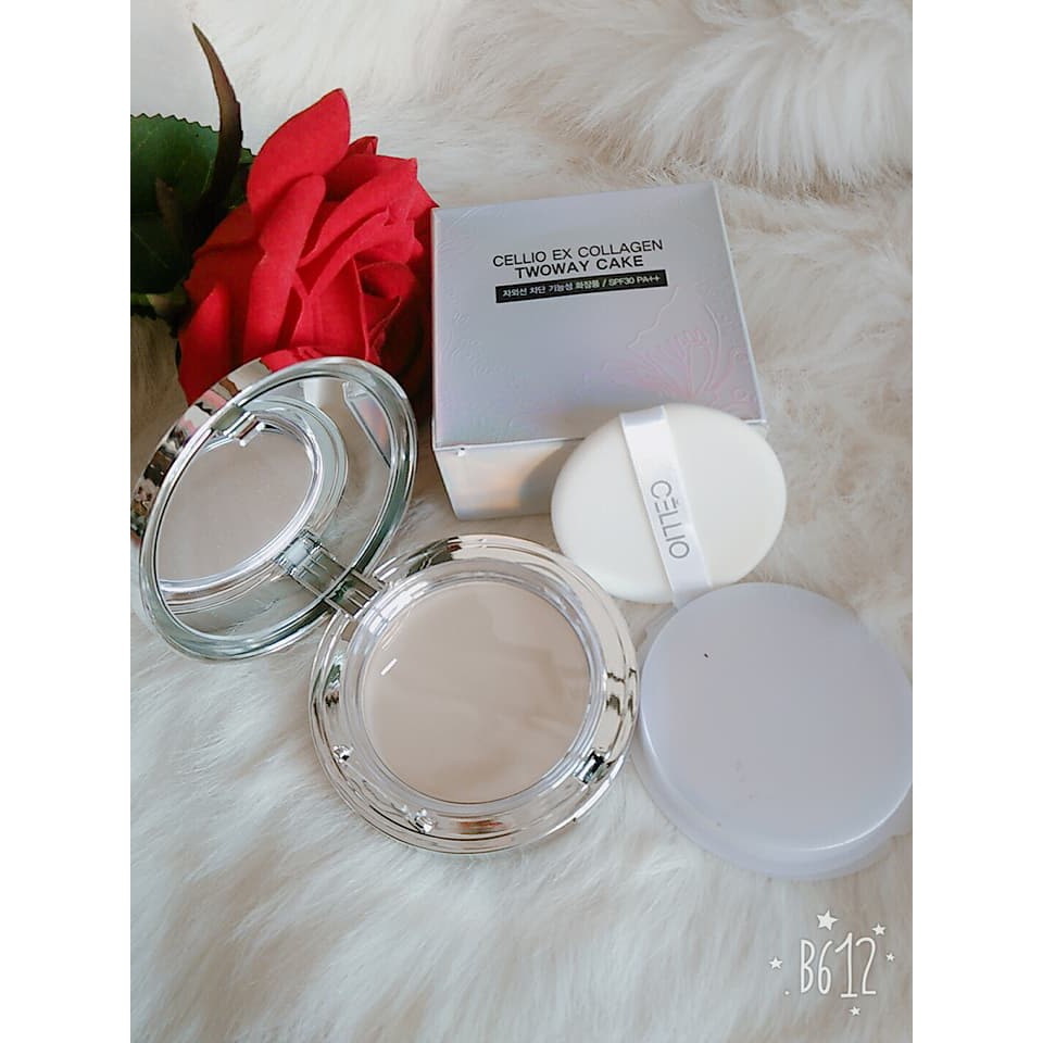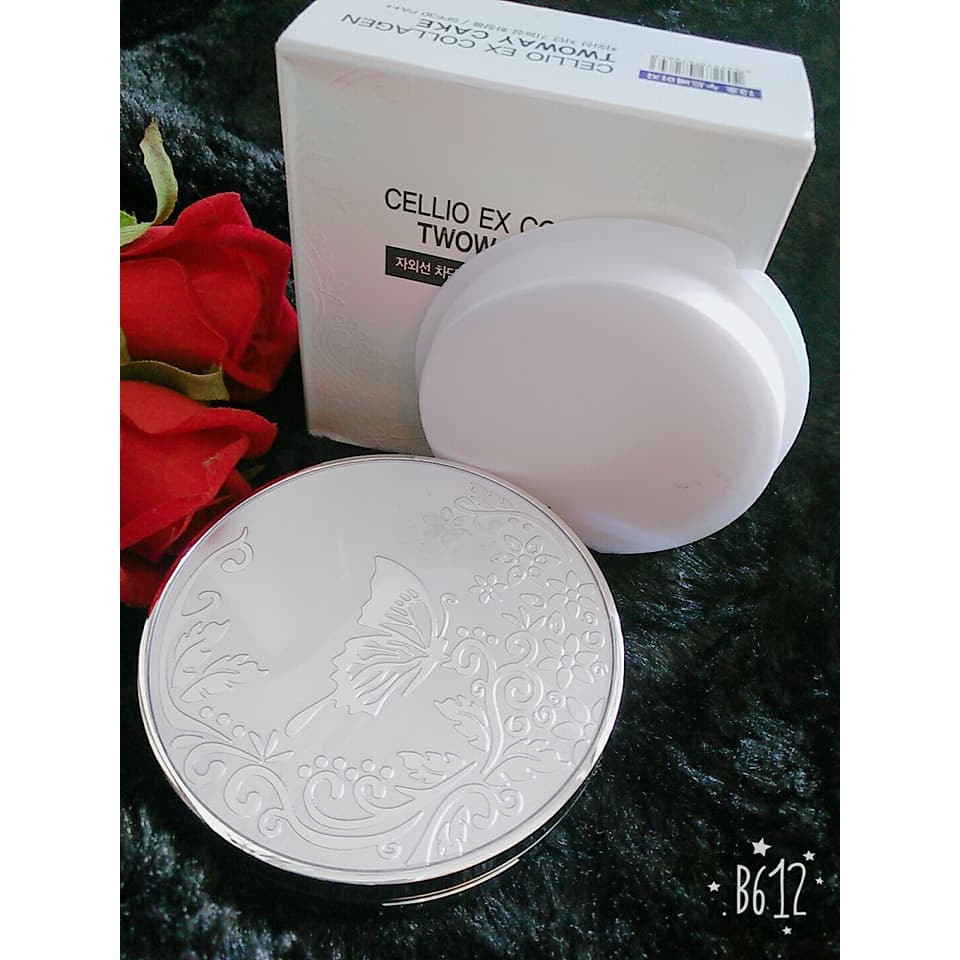 giá đã rẻ lại còn mua 1 tặng 1 nữa Phấn celio colagen✌👌😍💄💄💋 - Chứa những hạt collagen tổng hợp từ những hạt rỗng mịn tăng khả năng đàn hồi và độ láng mượt của làn da. - Dầu argan cung cấp dưỡng chất cho làn da khô, đồng thời hiệu quả tái sinh tế bào trong da. - Với lượng bột mềm mịn như nhung, sản phẩm dạng phấn với hiệu quả ngăn ngừa tia tử ngoại và bám dính một cách tự nhiên trên khuôn mặt. - Sản phẩm có khả năng chống nắng (SPF27, PA++), giúp da chống lại các tác động từ bên ngoài. Hướng dẫn sử dụng: Dùng bông phấn thoa nhẹ nhàng trên toàn khuôn mặt trước rồi thoa vào vùng chữ T, tránh miết bông phấn để tạo độ mịn và bám phấn hơn. Dùng sau lớp dưỡng da và kem lót nền.