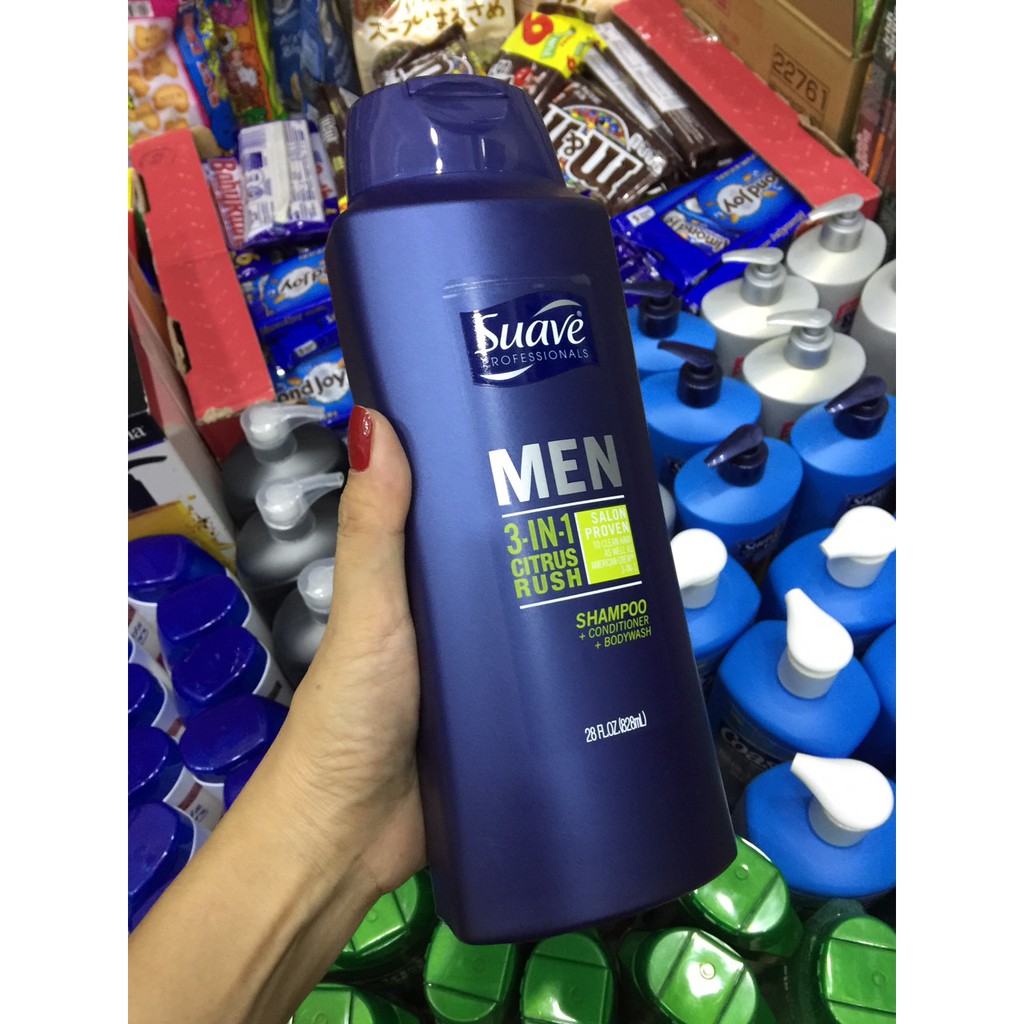 Dầu gội Suave nam 3 trong 1, dùng được cho cả tóc và cơ thể với công thức kết hợp dầu gội, xả và sữa tắm tất cả trong một chai. Suave 3 trong 1 được thiết kế riêng cho nam giới với mái tóc của mình Tại các thẩm mỹ viện, dầu gội Suave nam được đánh giá là sản phẩm làm sạch da đầu và được đăng ký bởi thương hiệu nỗi tiếng American Crew Daily Shampoo. Với kinh nghiệm nhiều năm về sản phẩm làm sạch da đầu cũng như tiếp thêm sinh lực cho phái mạnh. Dầu gội Suave nam là sản phẩm được chiết xuất từ cam quýt, các axit amin keratin, và glycerin giúp làm sạch da và tóc, cho bạn cảm giác thoải mái, tuyệt vời. Công thức hoạt động cho da và tóc sạch: Phái mạnh sẽ tiết kiệm thời gian trong phòng tắm chỉ với dầu gội Suave nam 3 trong 1 dùng được cho cả tóc và da. Da và tóc sẽ đươc làm sạch và dưỡng ẩm, điều hòa vi khuẩn cũng như giúp làm mới cơ thể từ đầu đến chân. Công thức dầu gội Suave nam: Dầu gội Suave nam tốt cho tóc và da bởi nó chứa nhiều axit amin keratin và glycerin. Với mùi hương dịu nhẹ, đây là sản phẩm cung cấp cho bạn năng lượng sau một ngày làm việc mệt mỏi cũng như làm sạch nhẹ nhàng cơ thể. Dung tích : 828ml Xuất xứ : Mỹ #suavemen #tamgoichonam #suatamnam