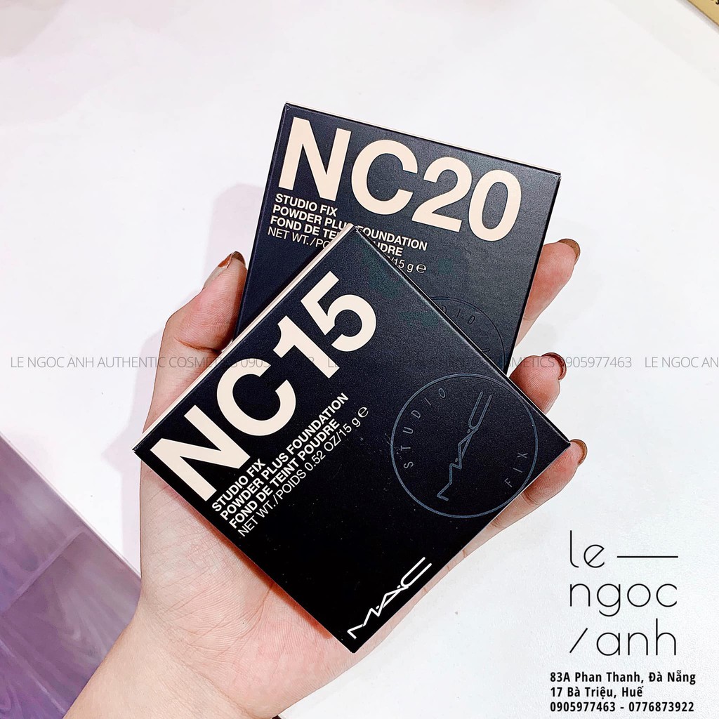Thiết kế của phấn phủ Mac Studio Fix luôn khiến các tín đồ làm đẹp mê mẩn, dù là những người khó tính nhất khi ngắm nhìn sản phẩm này cũng cảm thấy hài lòng ngay từ ánh nhìn đầu tiên. Với tông màu trắng đen, màu sắc đơn điệu nhưng tạo nên đẳng cấp và đây cũng là phong cách chính của MAC. Thành phần chính có trong dòng phấn phủ Mac này là silica làm cho phấn lên màu tốt và lâu trôi hơn, tăng khả năng hút dầu. Bên cạnh đó, với bột ngọc trai giúp các cô nàng có lớp makeup hoàn hảo mà còn giúp da trở nên trắng sáng tự nhiên, bảo vệ da khỏi các tác nhân gây hại từ ánh nắng mặt trời. Đây chắc chắn là sản phẩm phấn phủ kiềm dầu Mac mà bất cứ cô nàng có làn da thiên dầu cũng nên thử qua. Phấn có mùi hương khá nhẹ, chỉ cần tán phấn là dường như không ngửi thấy mùi nữa. Sau thời gian ngắn sử dụng bạn sẽ nhận thấy da không còn xỉn màu hoặc khô nứt bởi chất phấn dễ làm sạch hoàn toàn. Hiện tại bên Ngọc Anh có 4 màu - NC15 - NC20 - NC35 - NC45 Khi đánh phấn phủ Mac Studio Fix lên da không chỉ giúp lớp trang điểm hoàn chỉnh mà còn có khả năng hút dầu hiệu quả, che khuyết điểm và làm đều màu da. Là loại phấn phủ MAc cho da dầu nên các cô nàng có làn da dầu hoặc da hỗn hợp có thể yên tâm khi dùng em nó với khả năng kiềm dầu lên tới 8 tiếng, chắc chắn là sự lựa chọn tuyệt vời nhất. Cách sử dụng: - Làm sạch da: hãy bắt đầu làm sạch da với toner hoặc nước hoa hồng. Dùng đầu ngón tay vỗ nhẹ lên da giúp các dưỡng chất thẩm thấu sâu vào da. - Dùng phấn nền: lấy lượng kem nền vừa đủ và chấm đều lên mặt. Sử dụng mút tán đều kem để che các khuyết điểm. Cuối cùng dùng đầu ngón tay vỗ nhẹ lên mặt để phấn nền thấm đều lên da. - Dùng phấn nền: chấm nhẹ mút vào mặt phấn và tán đều lên mặt. Thay vì dùng mút trang điểm miết thì bạn hãy chấm nhẹ nhàng giúp phủ đều lên làn da - Dùng thêm các loại mỹ phẩm nếu có