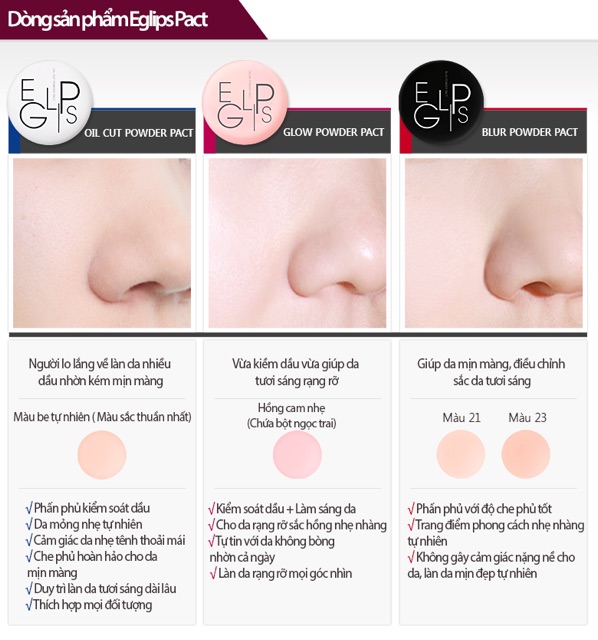 Đợi mãi mới rinh được 50 hộp vỏn vẹn đủ 3 loại về cho ce , phấn phủ được khách ưng nhất mà hay đứt hàng nhất của shop mấy năm nay đây ạ 😭😭 🔜 Lướt ảnh sang phải xem nha. ----------- Phấn phủ #EGLIPS Blur Powder Pact là một trong những sản phẩm yêu thích của “Nữ hoàng makeup” xứ Hàn – Pony. Hầu hết các chị em đã từng nhìn thấy sản phẩm này qua hàng loạt video hướng dẫn makeup của cô nàng này, và cả chị #changmakeup cũng sử dụng em nó luôn nhé , ce mau mau tậu về oánh cho thật xinh nhen ! 👉🏻Phấn phủ EGLIPS có 3 dòng sản phẩm nhỏ bao gồm: Oil Cut Powder Pact, Glow Powder Pact và Blur Powder Pact với các công dụng nổi bật khác biệt: - Oil Cut Powder Pact hộp trắng có khả năng kiềm dầu ổn định - Glow Powder Pact hộp hồng giúp khuôn mặt sáng bừng, căng bóng. - Blur Powder Pact có khả năng hiệu chỉnh màu da, làm mờ các khuyết điểm nhỏ, siêu mịn da. 👉🏻 Phấn phủ EGLIPS Blur Powder Pact có thiết kế hộp tròn đen kiểu dáng chắc chắn, nhỏ gọn, tiện lợi khi mang theo bên mình, bỏ vào túi trang điểm đều được. 👉🏻 Hộp phấn có lớp nhựa trong suốt bảo vệ và mút trang điểm kèm theo. Nói chung, kiểu dáng rất cơ bản, bình dân và tiện dụng.