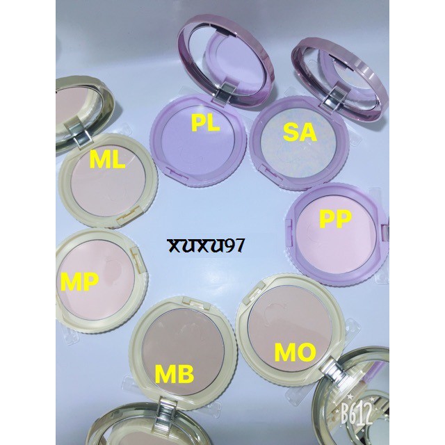 Mang lại nét thanh tú cho gương mặt với vẻ đẹp ngọt mềm như viên kẹo dẻo Marshmallow. Tạo một lớp phấn phủ sáng mờ để che dấu lỗ chân lông và vùng da không đều màu của bạn. Một loại phấn thoa mặt để hoàn thiện lớp phấn nền và làm nổi bật lớp trang điểm của bạn suốt ngày. Phấn được nén theo kiểu dáng gọn gàng giúp dễ dàng cất trong túi xách. Gam màu gồm có - Màu ML (Matte Light Ochre): tone trắng sáng tạo sự mơ màng quyến rũ rất thích hợp với những bạn có làn da trắng. - Màu MO (Matte Ochre): tone sáng da sẽ làm làn da bạn trông sáng hơn, phù hợp với những bạn có làn da trắng hoặc trung tính. Bạn nào da trắng đánh màu này sẽ tiệp màu da, da trung tính dùng màu này sẽ tạo lớp trang điểm trắng hơn màu da. - Màu MB (Matte Beige Ochre): tone màu da, dễ dàng hài hòa với màu da của bạn, phù hợp với các bạn có màu da trung tính hoặc da ngăm. Dùng cho da trung tính sẽ tiệp màu da, tạo lớp trang điểm tự nhiên, da ngăm dùng màu này sẽ sáng hơn màu da một tone, giúp da bạn trắng sáng hơn. -Màu MP(Matt Pink Ocher) mới ra t10/2017 màu này dành cho b nào da sáng nha tạo lớp trang điểm tự nhiên trắng hồng đầy sức quyến rũ - Màu PN(ngọc trai): tone trắng hồng, chứa các hạt ngọc trai mịn tạo nên lớp nền trong suốt, mềm mượt cho làn da, màu này phù hợp với mọi màu da ạ. Ngay sau khi thoa phấn làn da nhìn sẽ mịn màng và trắng hồng rạng rỡ hơn với ánh ngọc trai, nhìn rất dễ thương. -Màu PP ( Ngọc trai ): tone cho da tự nhiên dòng ánh ngọc trai tạo hiệu ứng hút sáng cho làn da sáng đẹp -PL (màu lavender) : tone màu lavender thoạt đầu nhìn các bạn sẽ nghĩ đánh lên liệu mặt có tím như màu phấn ko , nhưng ngược lại màu lavender khi sử dụng làm cho da siêu mịn trong veo cực đẹp luôn ạ có video các bạn nữ bên nhật đang sử dụng đó ạ -SA màu mới ra : gồm có 3 gam màu xanh vàng hồng có ánh ngọc trai hút sáng nên sẽ hút sáng tạo độ sáng cho vùng mặt và thấm hút dầu cực tốt . SA cho các bạn tạo khối sáng trên khuôn mặt như vùng chữ T, gò má và cằm đánh cực đẹp luôn ạ