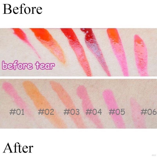Xuất xứ: Hàn Quốc - Đây là dòng sản phẩm son siêu lì, siêu bám và bền màu lưu từ 1 - 2 ngày. Sản phẩm thích hợp cho những nàng bận bịu không có thời gian chăm sóc đôi môi. Đặc điểm của sp là không lem không trôi tha hồ ăn uống và dưỡng môi hiệu quả lun nhé !! - Ko hề gây kích ứng - Ko làm khô và làm thâm môi Shop có các tông màu sexy red : đỏ chút ánh cam nhẹ tươi tắn Cherry red: đỏ mọng đậm quyến rũ Orange :cam tươi Rose pink : hồng cánh sen nhẹ nhàng Cách sử dụng : + Thoa 1 lớp son lên bề mặt môi + Ủ màu môi 15 - 20p, son sẽ tự bong ra, bóc lớp son ra và son sẽ để lại 1 đôi môi tươi tắn với gam màu bạn yêu thích + Thoa thêm son ủ thêm 1 lớp son nữa nếu bạn muốn màu đậm hơn ( làm y hệt bc 2 )