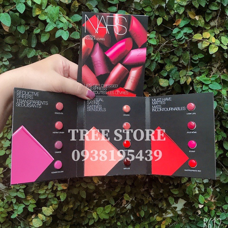Vỉ son Nars gồm 12 màu, đủ loại từ Sheer đến Matte - đủ màu Một ô dùng cũng phải 4-5 lần nha (tuỳ mỗi người) -----------------------