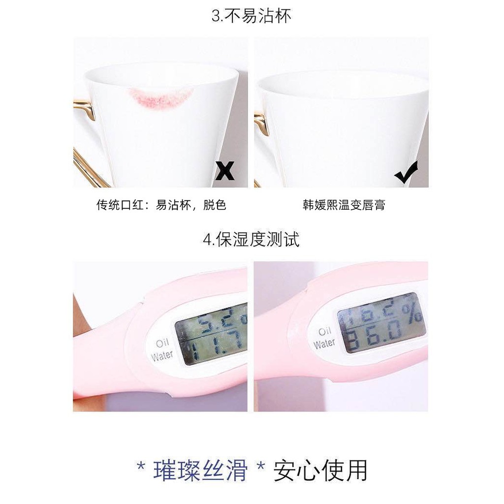 Son Dưỡng Rắc Vàng 24k Dạng Thạch Hãng HEYXI - Đổi Màu Theo Thời Gian - Vị Berry - Hương Hoa Hồng - Không Lem Lên tone theo nhiệt độ cơ thể và thời gian bôi
