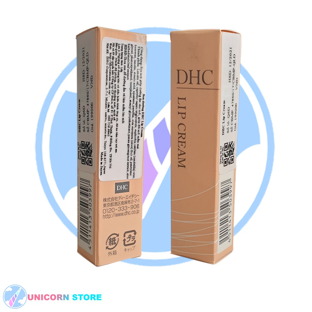 Son dưỡng DHC Lip Cream là một trong những sản phẩm best-seller của hãng mỹ phẩm nổi tiếng DHC Nhật Bản. Son DHC dưỡng môi có nguồn gốc từ thiên nhiên từ dầu olive nguyên chất, lá lô hội, cam thảo và vitamin E,... nên rất an toàn cho người sử dụng. Đây là sản phẩm vừa có tác dụng dưỡng ẩm tốt, vừa trị thâm môi và chống lão hóa hiệu quả. Son DHC dưỡng môi có thành phần tự nhiên, không chì, không hương liệu, không phẩm màu, không paraben. Với nhiều công dụng vượt trội, son dưỡng DHC Lip Cream luôn nằm trong TOP SON DƯỠNG BÁN CHẠY NHẤT tại Nhật Bản. Công dụng son dưỡng DHC Lip Cream - Son dưỡng DHC Lip Cream Dưỡng môi mềm mịn ngay tức thì. - Bảo vệ môi trước nhiều tác động và giữ cho đôi môi căng mọng suốt ngày dài. - Ngăn ngừa các dấu hiệu lão hóa, hỗ trợ điều trị thâm môi hiệu quả, làm hồng môi và khắc phục tình trạng nứt rãnh môi. - Có thể dùng son DHC làm lớp nền hoàn hảo trước khi thoa son màu Thành phần son dưỡng DHC Lip Cream - Thành phần chính: Dầu lanolin, dầu olive, chiết xuất rễ nhân sâm, chiết xuất lô hội. - Thành phần khác: caprylic/capric triglyceride, euphorbia cerifera (candelilla) wax/candelilla cera/cire de candelilla, beeswax/cera alba/cire d’abeille, stearic acid, squalane, pentylene glycol, tocopherol, phenoxyethanol, stearyl glycyrrhetinate. Cách dùng son dưỡng DHC Lip Cream - Thoa nhẹ nhàng lên môi để dưỡng ẩm và làm mềm môi. - Bạn cũng có thể dùng son dưỡng DHC như một lớp son nền trước khi tô son màu. Điều này vừa giúp son lên màu đẹp lại vừa dưỡng ẩm và bảo vệ đôi môi không bị bong tróc hay thâm sạm. Lưu ý khi sử dụng son dưỡng DHC Lip Cream: - Trước khi thoa son dưỡng môi DHC bạn nên tẩy tế bào chết và son cũ để môi mềm thẩm thấu dưỡng chất tốt hơn. - Không để son dưỡng trực tiếp với ảnh nắng mặt trời, nhiệt độ cao. *Bao bì sản phẩm có thể thay đổi tùy vào từng lô hàng